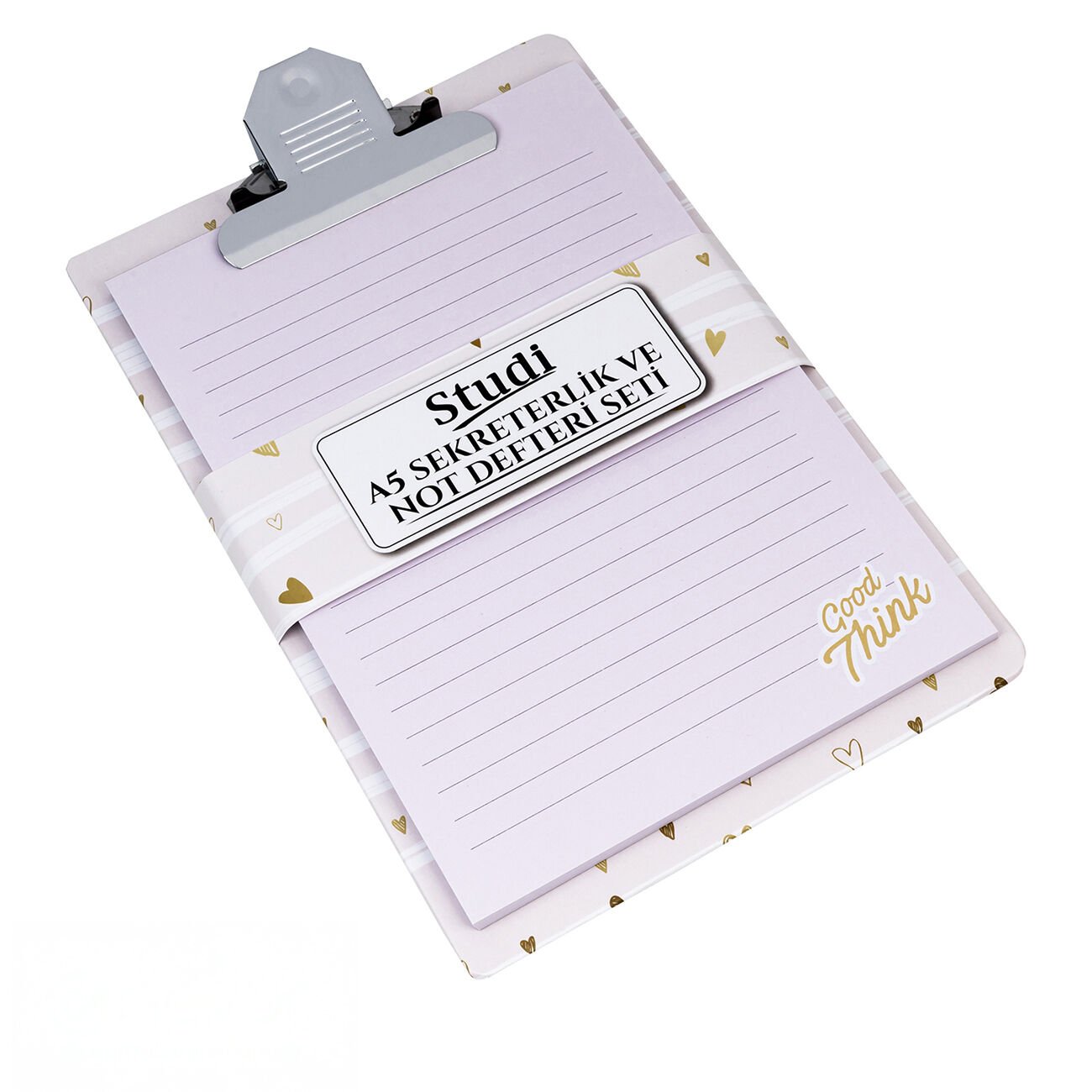 A5 Sekreterlik Ve Not Defteri Seti - Kalp Desen