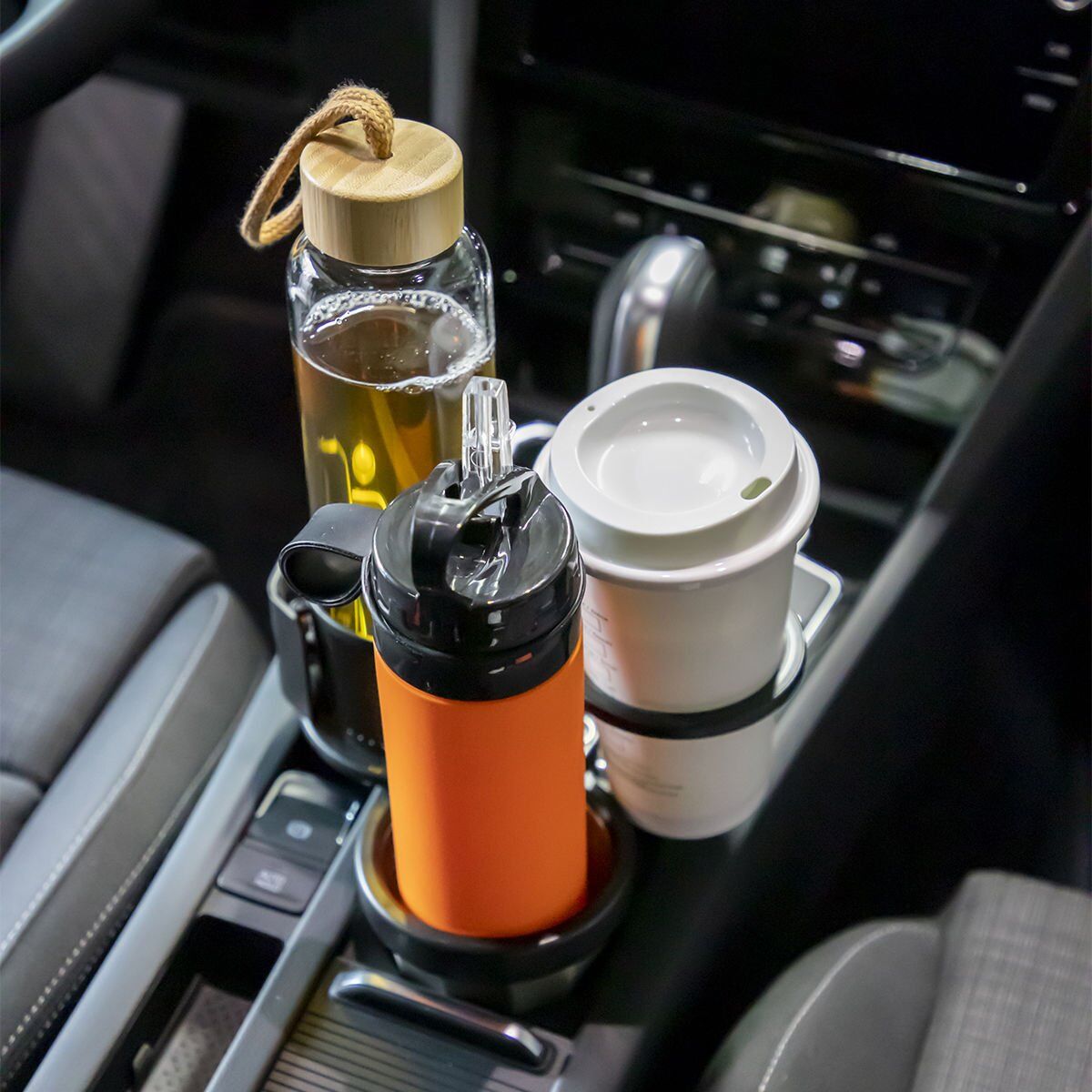 - Fonksiyonel Tasarım: Kahve keyfini çıkarın, içeceğinizi soğuk ya da sıcak tutun, telefonunuzu güvenle tutun, ve aynı zamanda küçük eşyalarınızı depolayın. 360 derece dönebilen fincan halkaları sayesinde içeceğiniz her an elinizin altında.