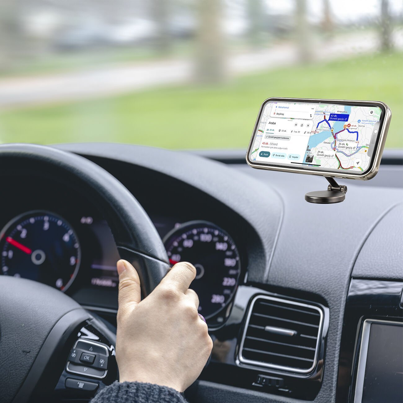 - Her araç tipine uyum sağlayan bu tutucu, telefonunuzu hem dikey hem yatay konumda sabitleyerek güvenli bir sürüş deneyimi sunar.
