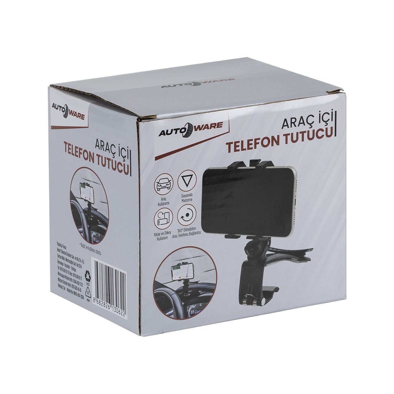 - Sürüş sırasında güvenlik ve konforu ön planda tutan Autoware Araç İçi Telefon Tutucu, 360° dönebilen bağlantı mekanizması ve dayanıklı PP (Polipropilen) malzemesiyle telefonunuzu her açıdan sabit ve güvenli tutar.