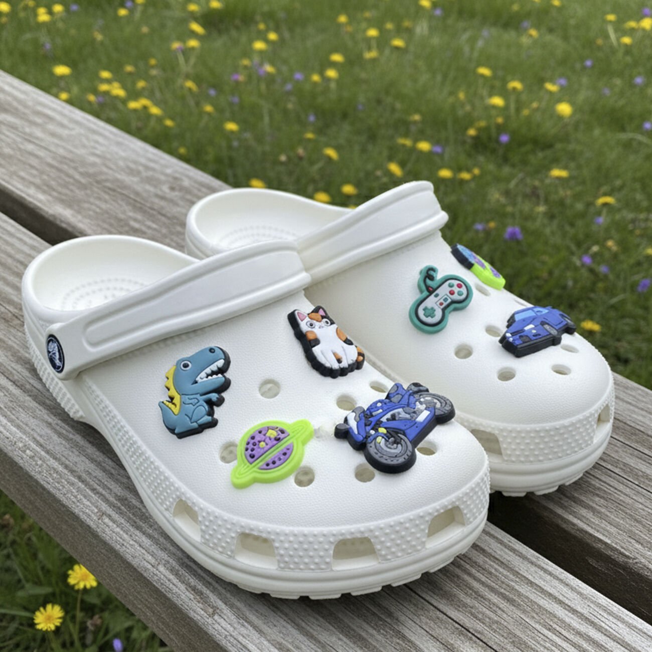 Delikli terlikleriniz için şık, eğlenceli ve dikkat çekici bir görünüm sunan 6’lı terlik süsü seti, günlük kullanımda tarzını yansıtmak isteyenler için idealdir. Canlı renkleri ve kaliteli desenleri sayesinde terliklerinize estetik bir dokunuş katar.