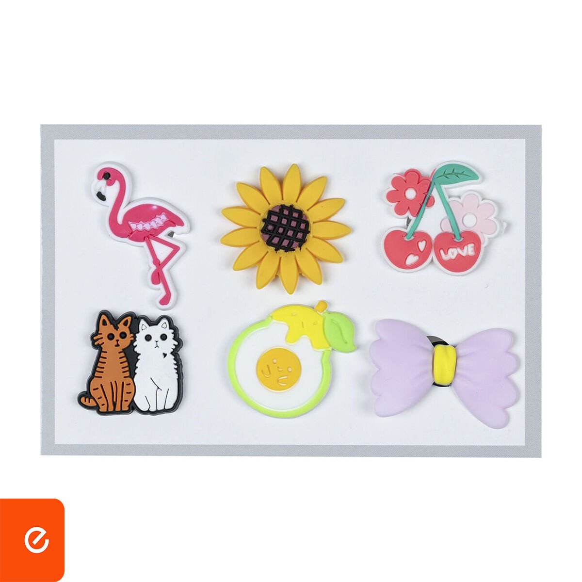 Delikli terlikleriniz için şık, eğlenceli ve dikkat çekici bir görünüm sunan 6’lı terlik süsü seti, günlük kullanımda tarzını yansıtmak isteyenler için idealdir. Canlı renkleri ve kaliteli desenleri sayesinde terliklerinize estetik bir dokunuş katar.