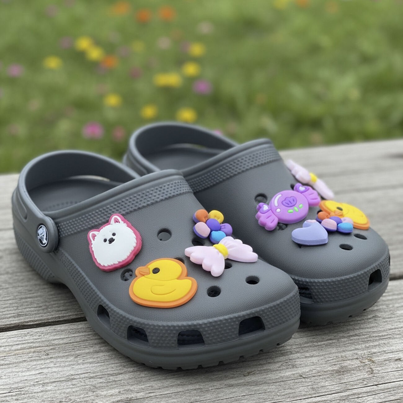 Delikli terlikleriniz için şık, eğlenceli ve dikkat çekici bir görünüm sunan 6’lı terlik süsü seti, günlük kullanımda tarzını yansıtmak isteyenler için idealdir. Canlı renkleri ve kaliteli desenleri sayesinde terliklerinize estetik bir dokunuş katar.