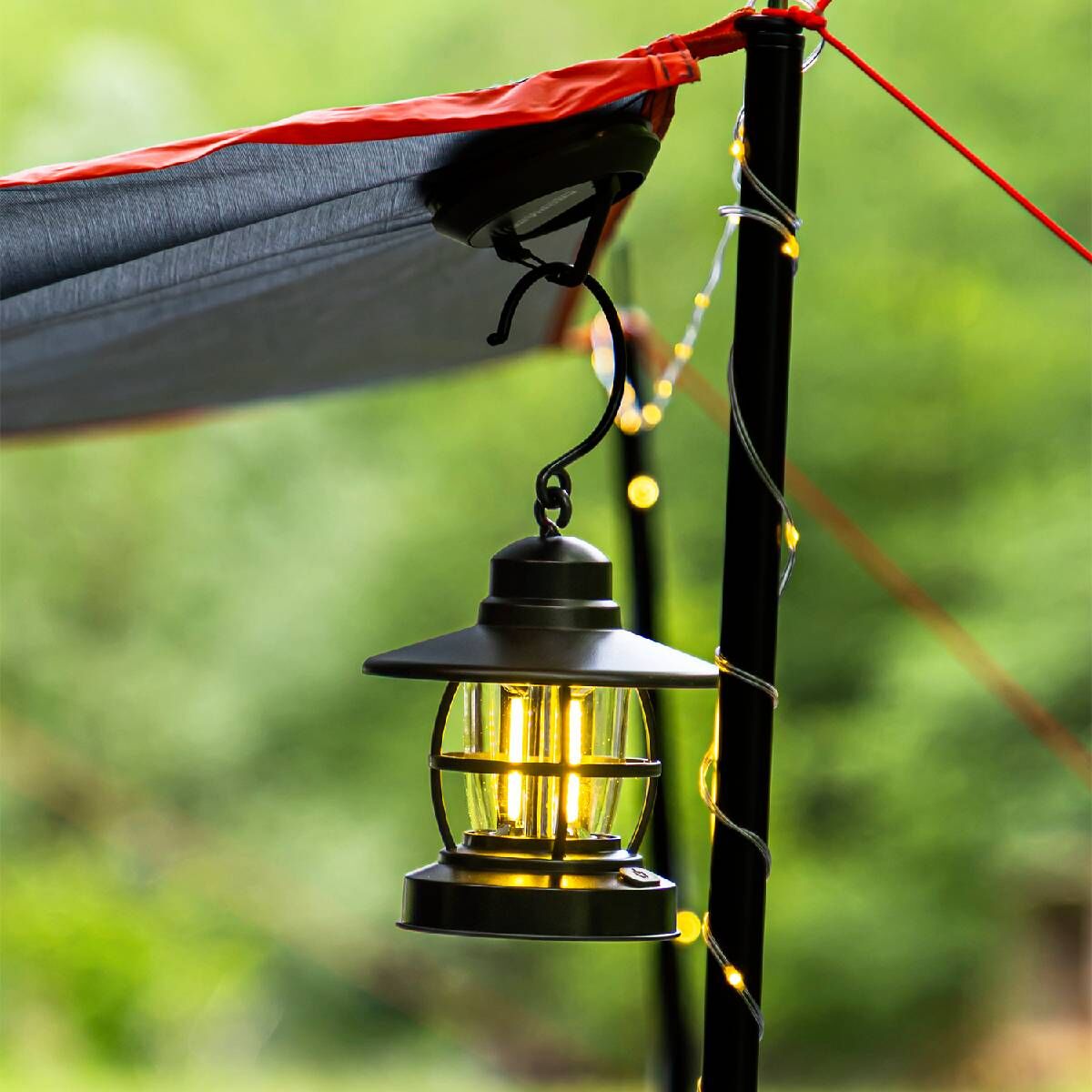 Asılabilir kanca tasarımı, çadır tavanı, ağaç dalı, kamp askısı ya da balkon kancası gibi birçok noktaya kolayca monte edilmesini sağlar.