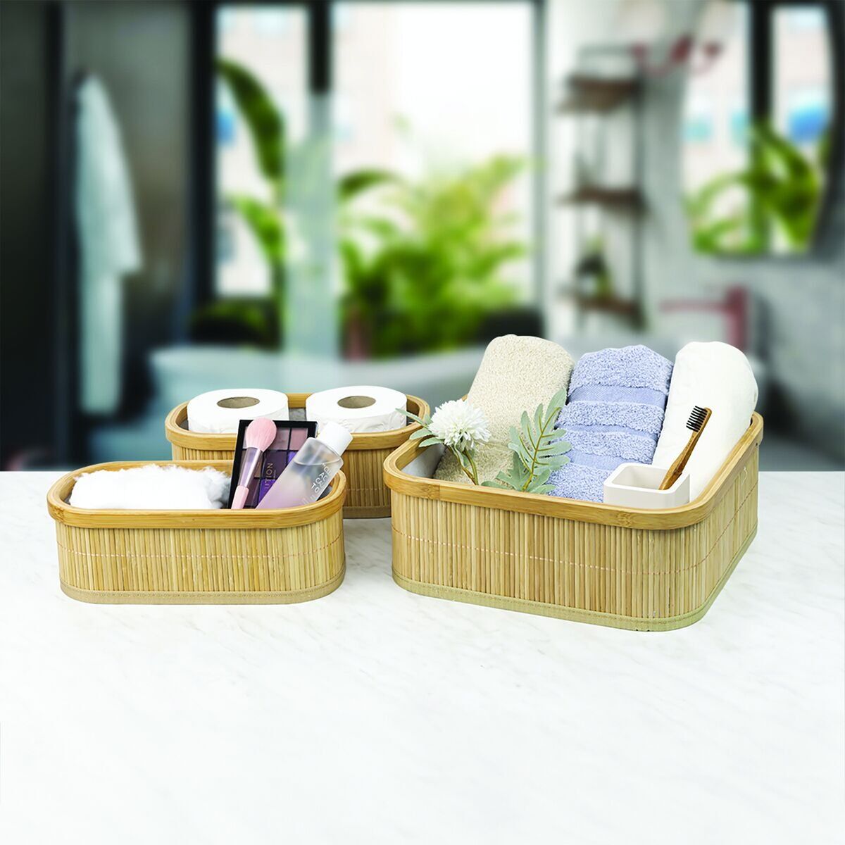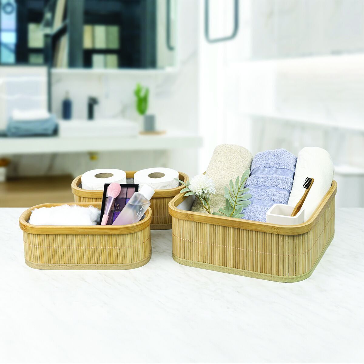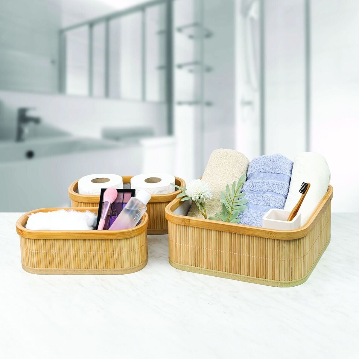Üç farklı boyutta üretilen bambu organizerler, farklı ihtiyaçlara cevap verir. Büyük sepet, oyuncak, havlu, yastık gibi büyük eşyalarınızı saklamak için idealdir. Orta sepet, kitap, dergi, aksesuar gibi eşyalarınızı saklamak için idealdir. Küçük sepet, saklama için küçük ve dar alanlar için idealdir.