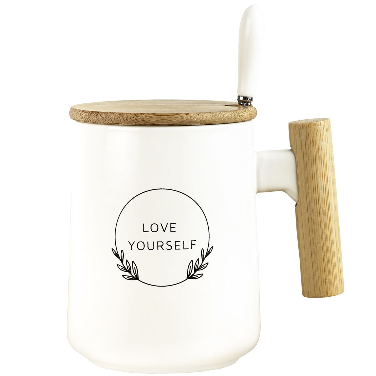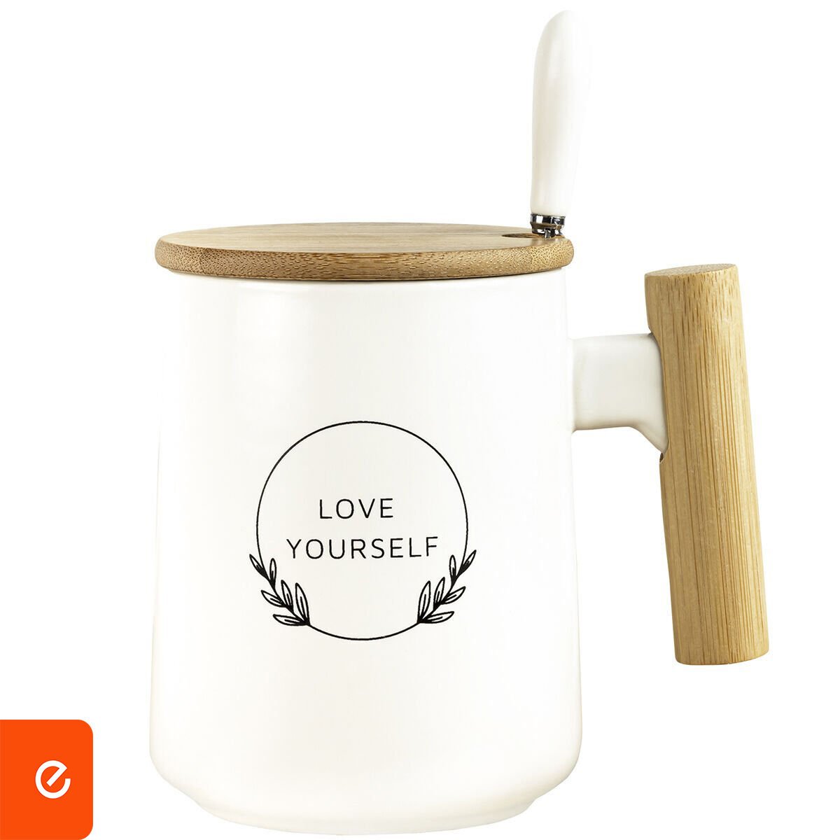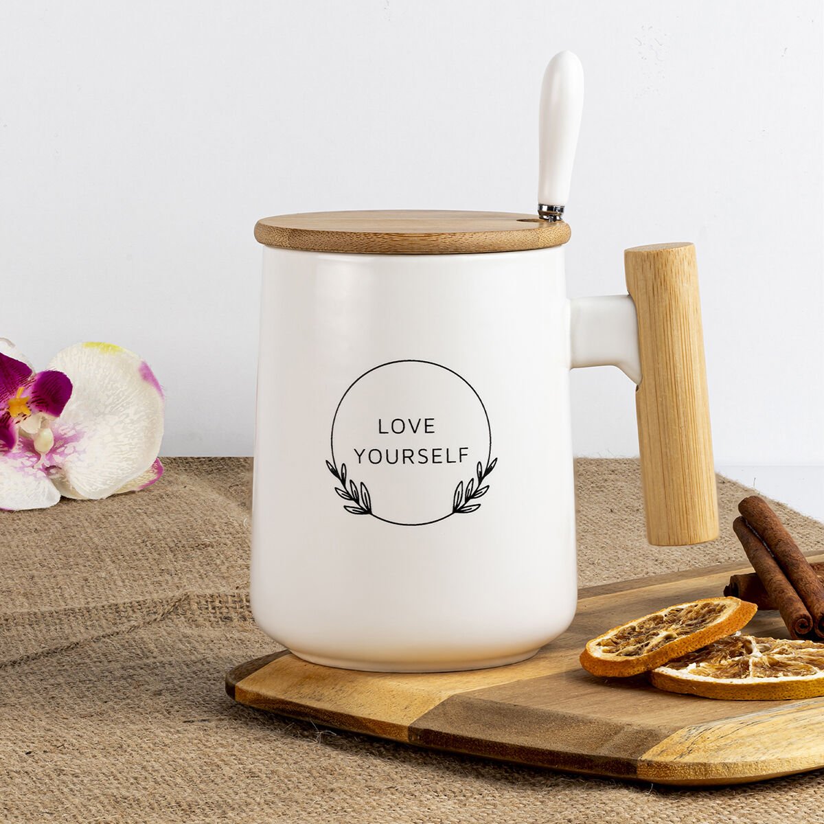 Bambu Kapaklı Kaşıklı Seramik Kupa 450 ml