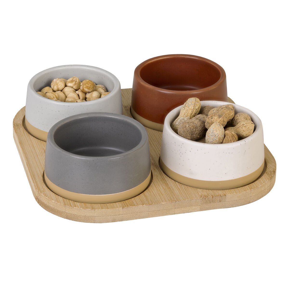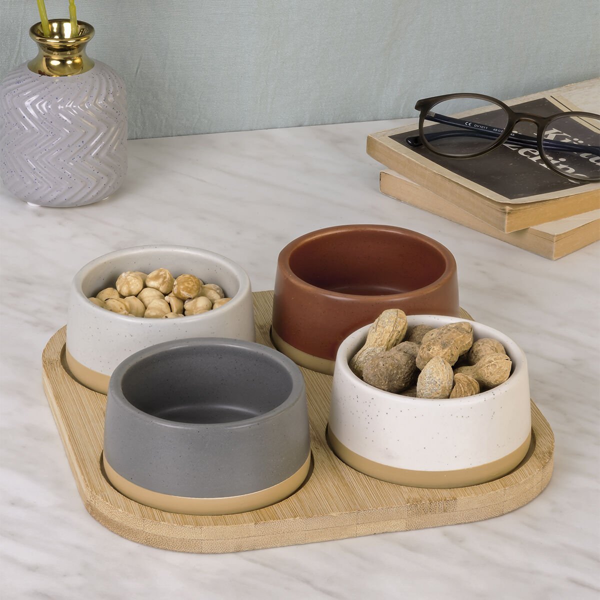 Bambu Tabaklı Seramik Çerezlik 4’lü Set