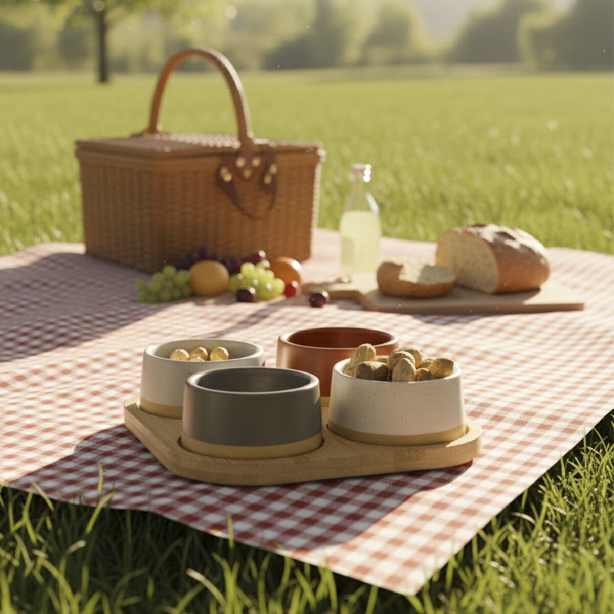 - 4 adet kare seramik çerezlik ve %100 bambu sunum tablasından oluşan bu set, misafirlerinize atıştırmalık, çerez, sos, meze veya küçük aperatifleri estetik bir şekilde sunmanız için mükemmel bir tercihtir. Hem günlük kullanım hem de özel davetler için ideal olan bu ürün, şık sunumlarıyla sofralarınıza modern ve doğal bir hava kazandırır.