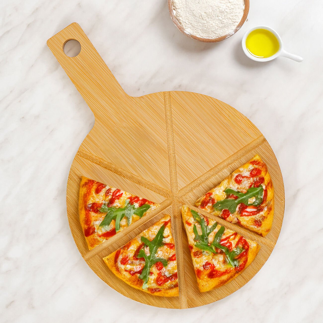 Benante Bambu Yuvarlak Kesme Tahtası - 33 cm x 23 cm ile mutfağınıza doğallık ve şıklık katın! %100 bambu, dayanıklı yapı ve estetik tasarım bir arada.