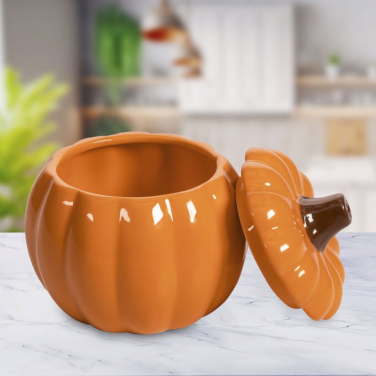 480 ml kapasitesi ile baharat, kuruyemiş ve şekerleme gibi gıdalarınızı saklamak için ideal olan Benante - Bal Kabağı Şekilli Seramik Kavanoz, şıklığı ve fonksiyonelliği bir araya getirir.