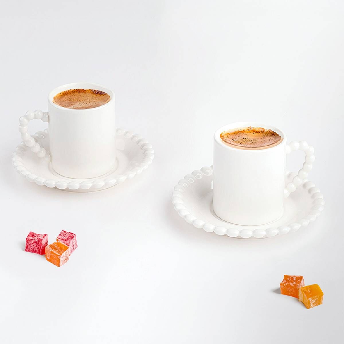 90 cc hacme sahip Boncuklu Seramik Kahve Fincan Seti , Türk kahvesi, espresso ve diğer sıcak içecekler için hem işlevsel hem de estetik bir sunum sunar.