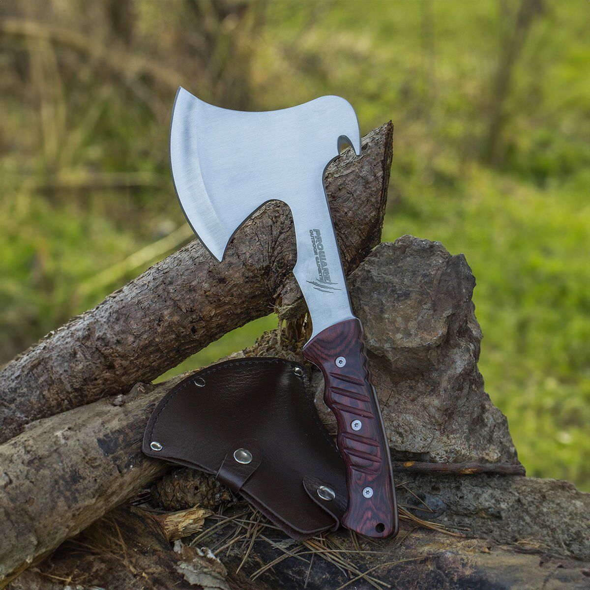 Baltanın sapı ahşaptır ve ergonomik bir yapıya sahiptir. Bu sayede, baltayı kullanırken konforlu bir tutuş sağlar. Şişe açacağı mevcuttur, bu nedenle kampta içeceklerinizi açmak için bir şişe açacağı aramanıza gerek kalmaz.