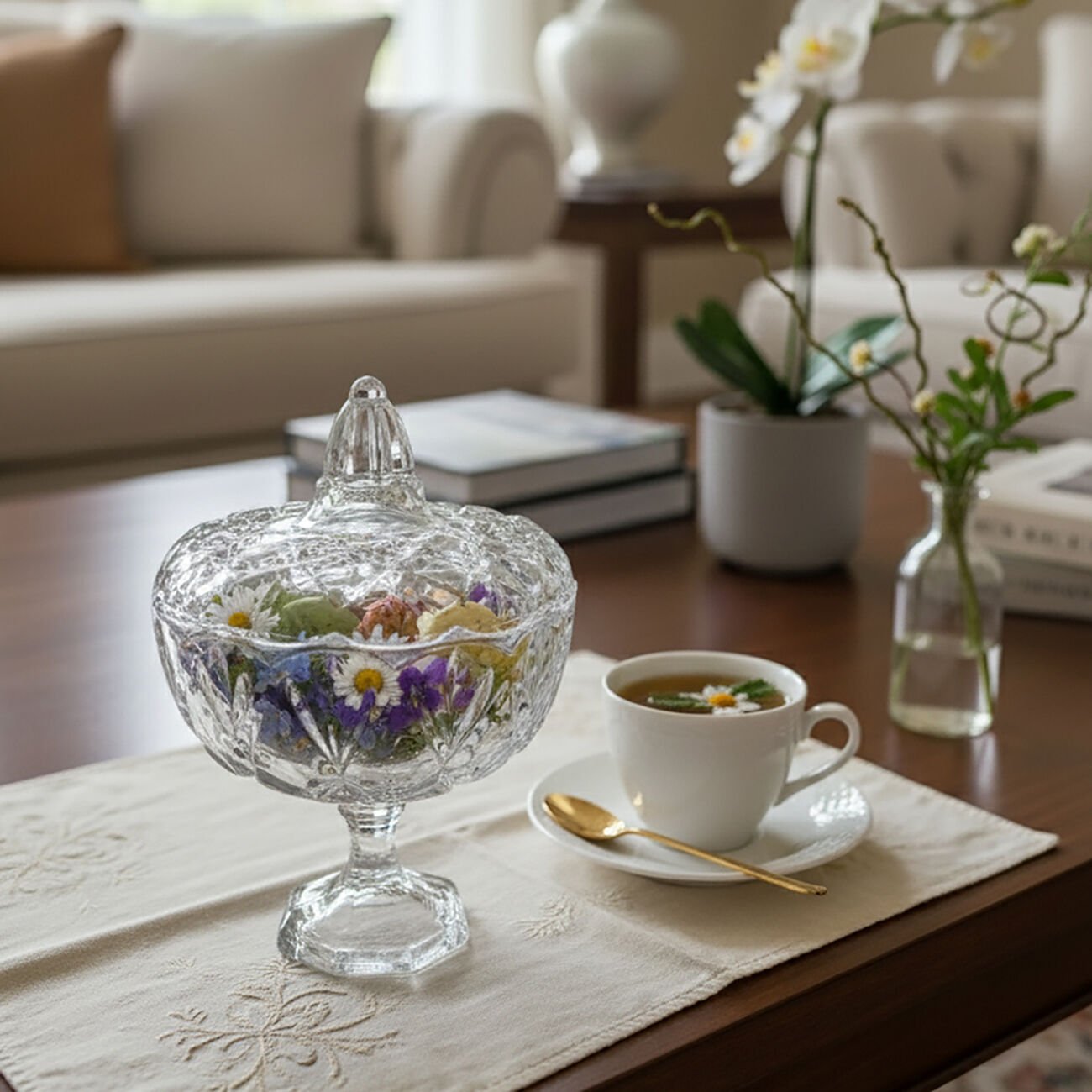 - Dayanıklı cam malzemeden üretilen şekerlik, hem estetik hem de uzun ömürlü kullanım sağlar.