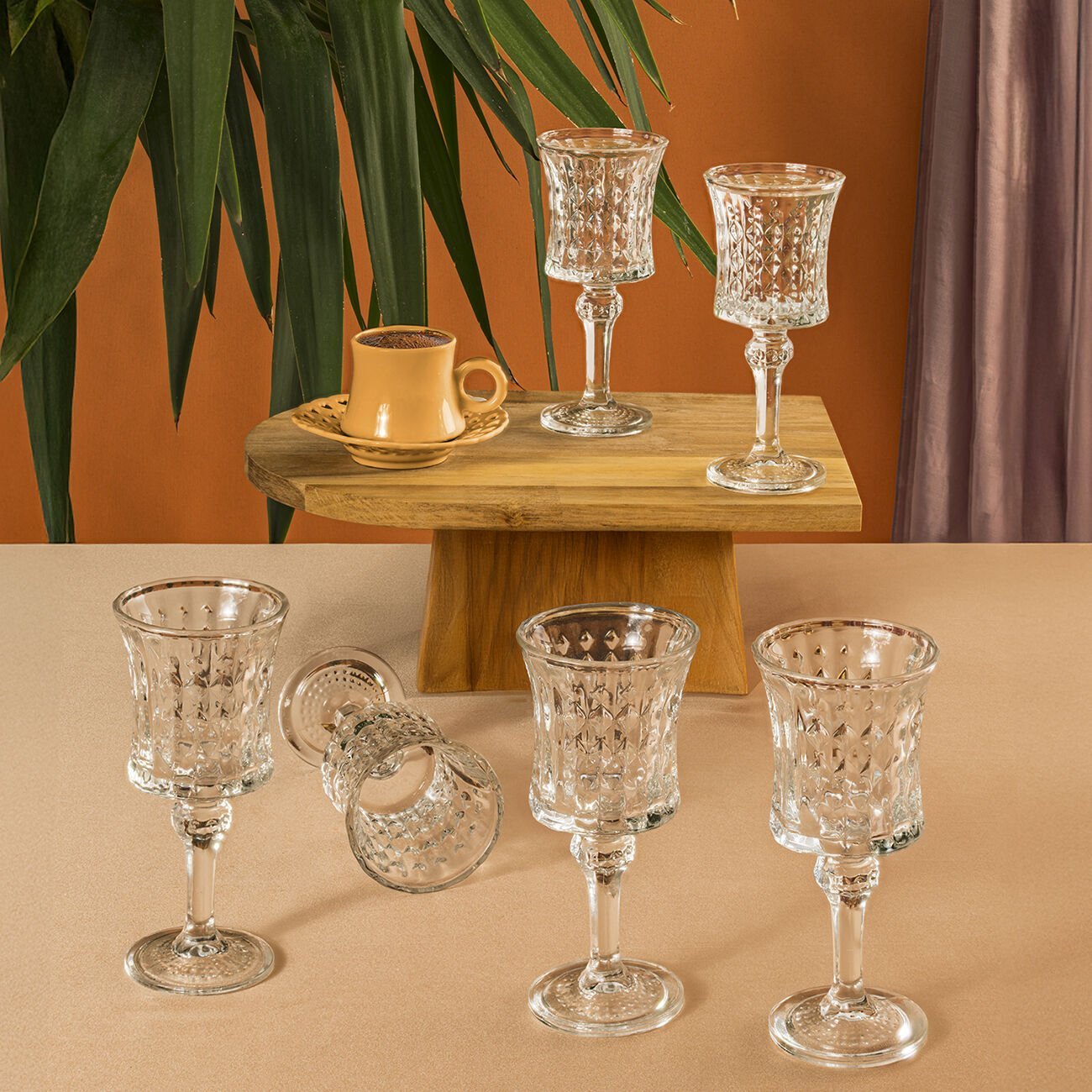 - Kahve keyfinizi taçlandıracak şıklıkta bir dokunuş! Cam Kahve Yanı Bardak Seti, zarif tasarımı ve ideal 140 cc kapasitesiyle hem günlük kullanımda hem misafir sofralarında fark yaratır. Kristal kesim görünümüyle estetik ve işlevselliği bir araya getirir.