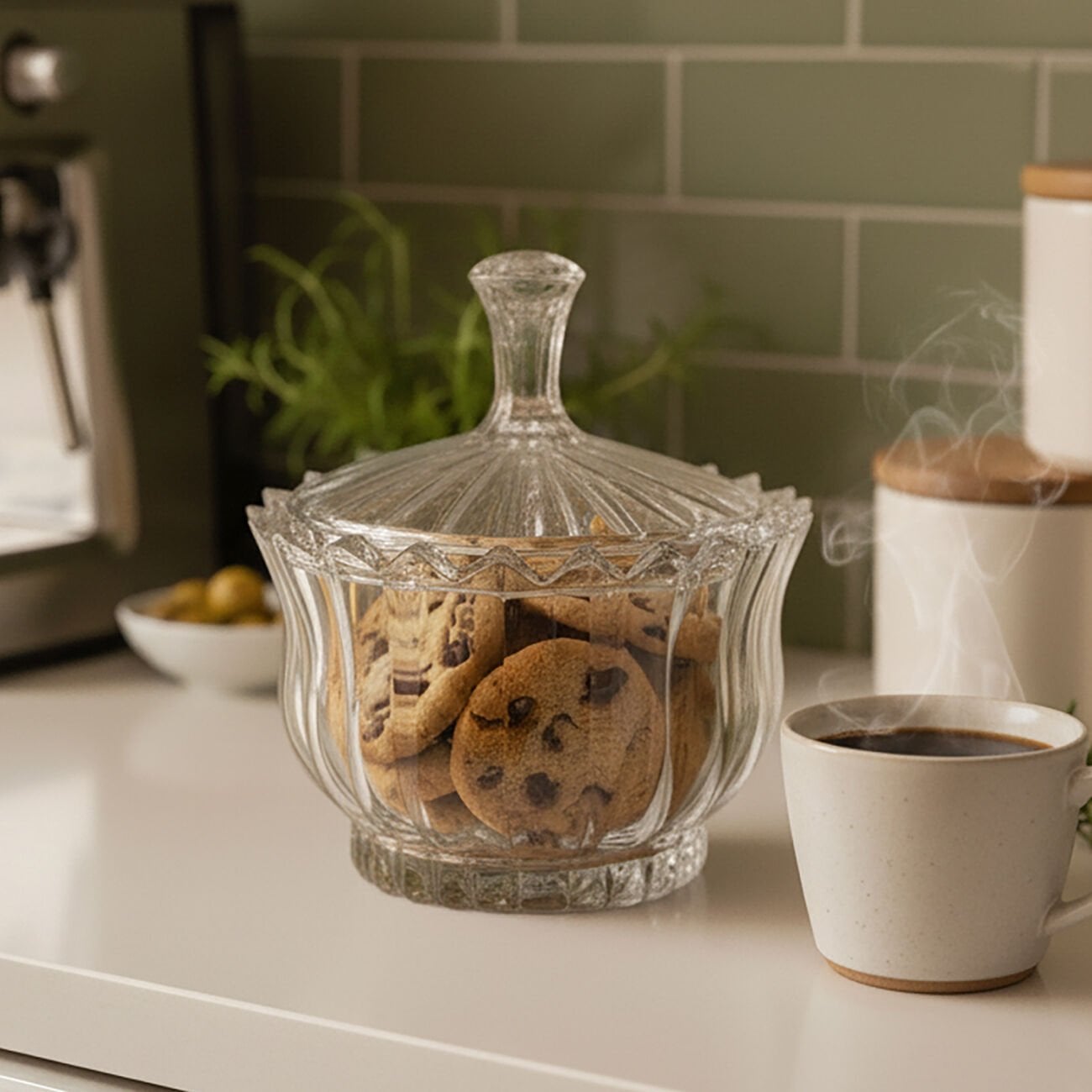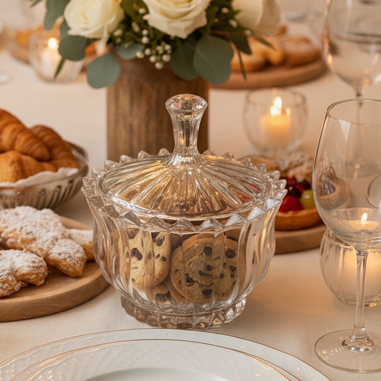 - Sofralarınıza zarif bir dokunuş katmak için tasarlanan Glass in Love Cam Kurabiyelik, 900 cc kapasitesiyle kurabiye, şekerleme, lokum, çikolata ve çeşitli atıştırmalıklarınızı şık bir şekilde sunmanıza olanak tanır.