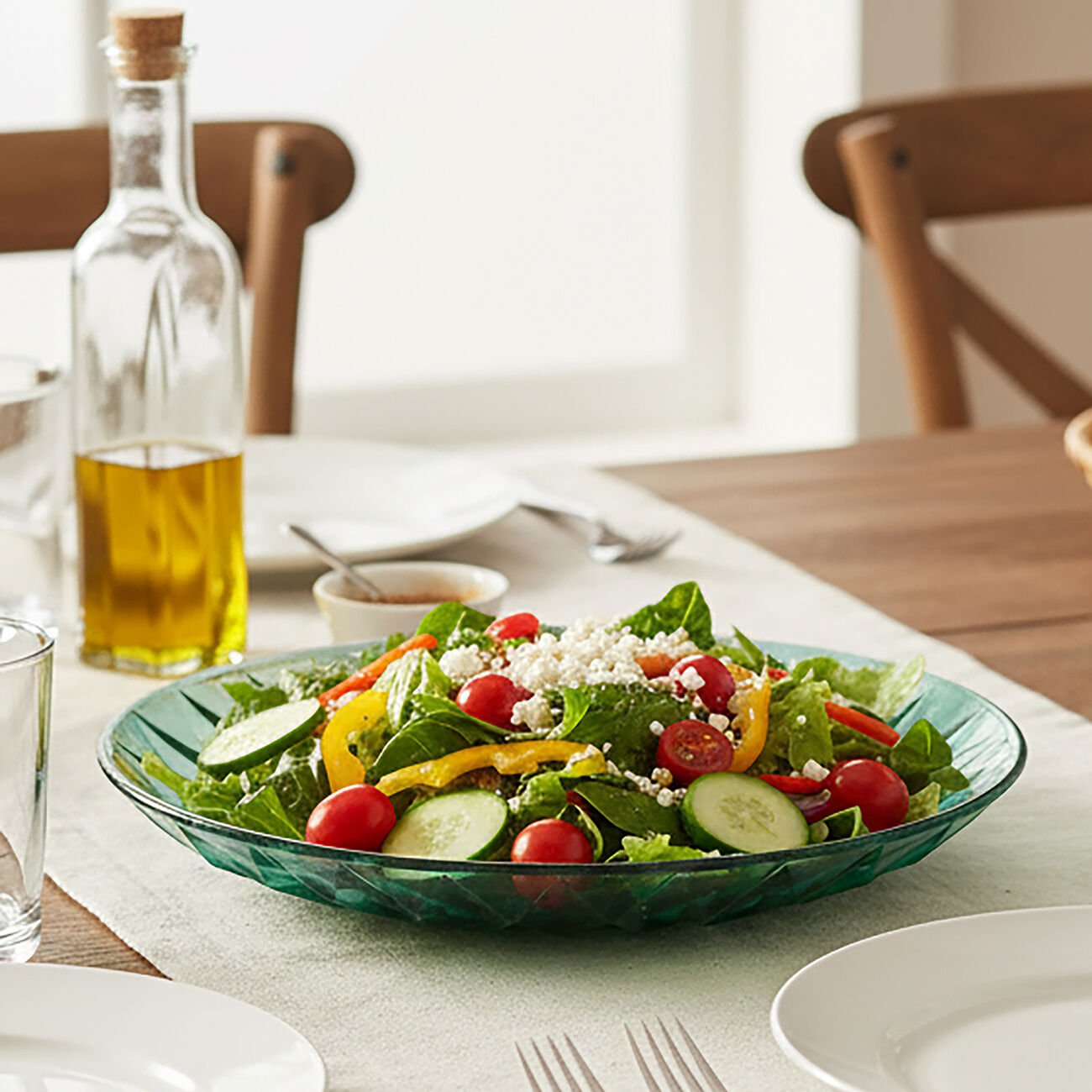 - Sofralarınızı şıklıkla donatacak bu tabak, 32 cm çapıyla geniş kullanım alanı sunar. Yüksek kaliteli cam malzemesiyle hem dayanıklı hem de şık bir tasarıma sahip olan bu tabak, salatalarınızı ve meyvelerinizi sunmanın en zarif yoludur. İster günlük yemeklerinizde, ister özel davetlerinizde olsun, bu cam tabakla sofralarınıza estetik bir dokunuş katın.