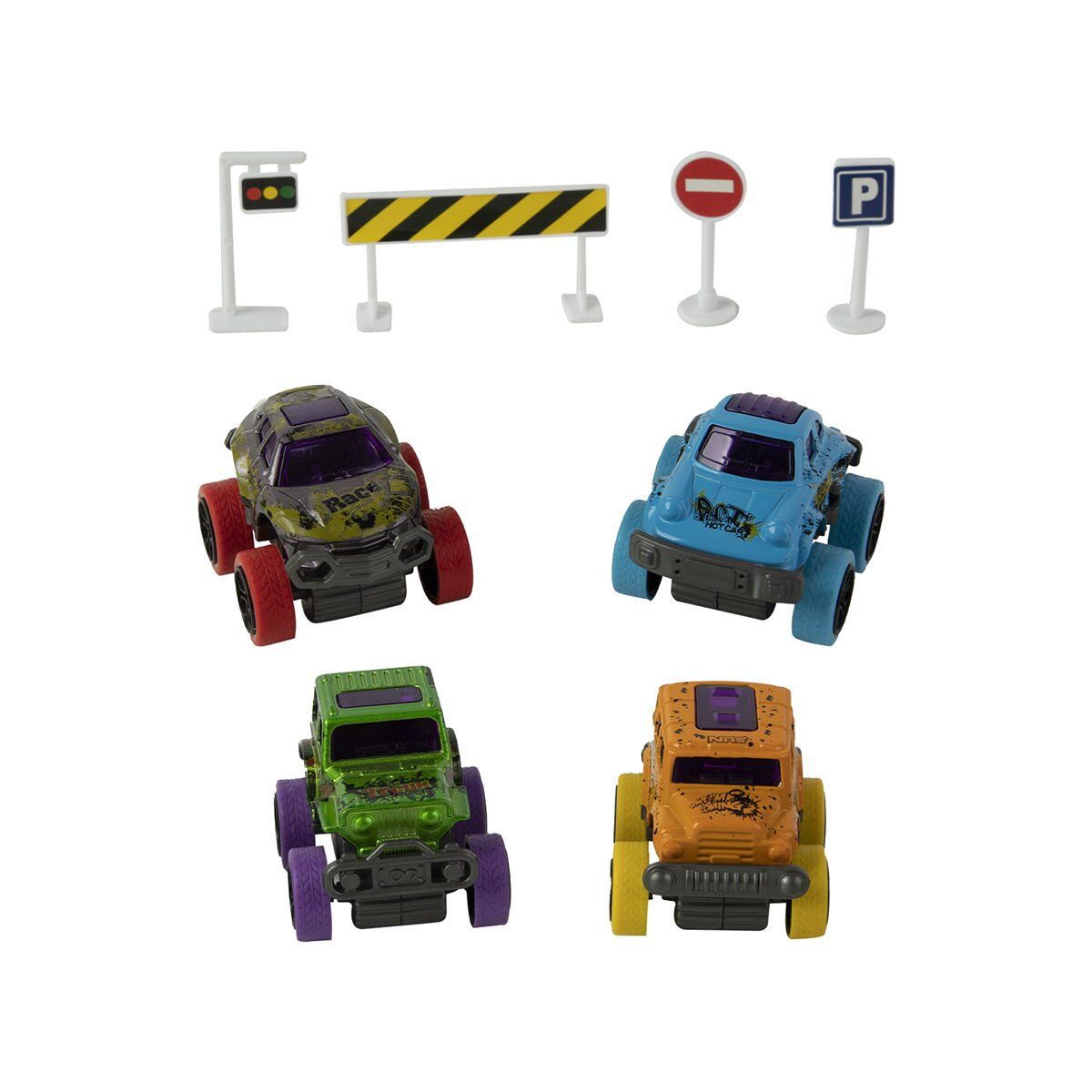 - Araba seti, 4 adet metal arabadan ve çeşitli trafik tabelalarından oluşmaktadır.
