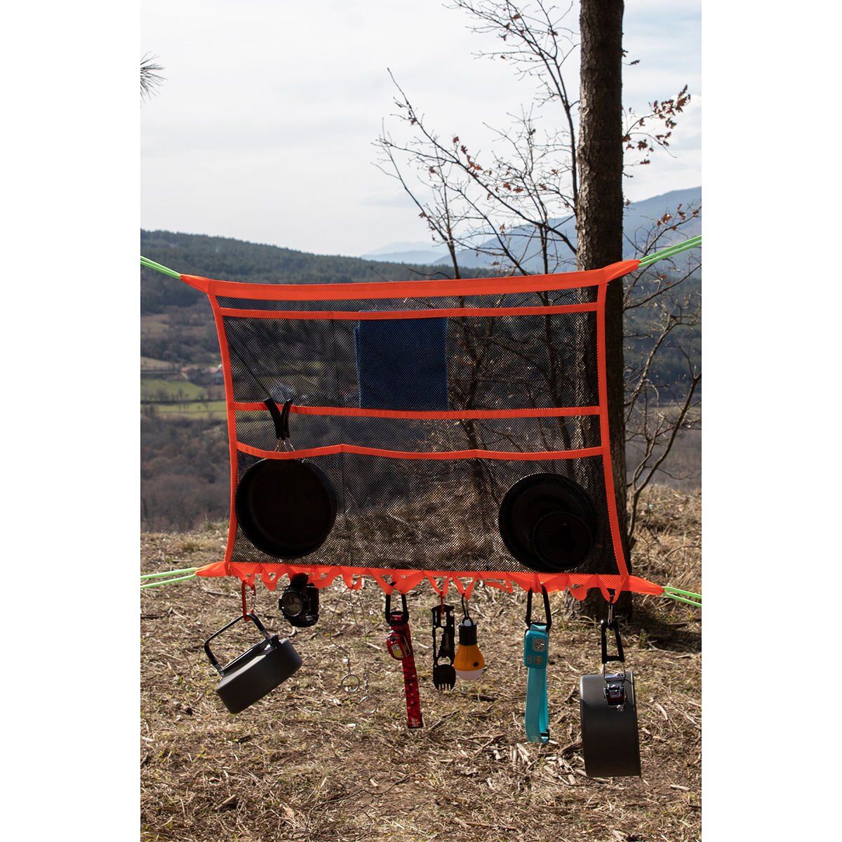 Kamp malzemelerinizi düzenli tutmanın en pratik yolu için bu cepli kamp organizerini tercih edin.
