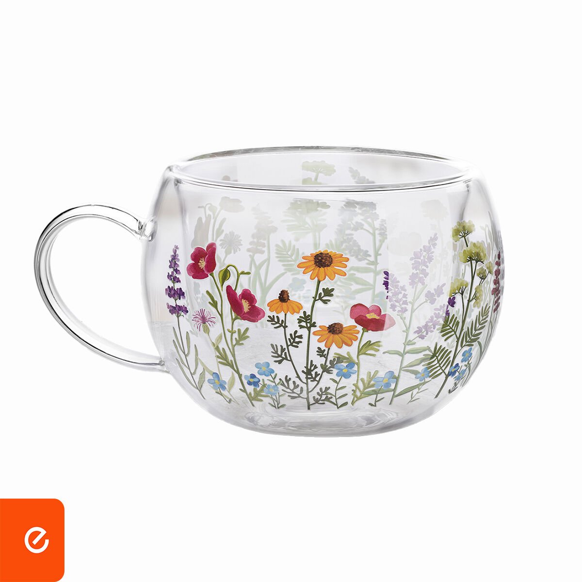 Çiçek Desenli Borosilikat Kupa