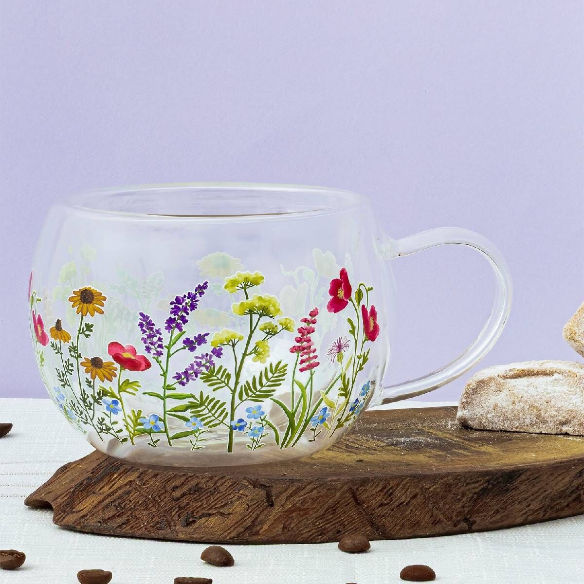Çiçek Desenli Borosilikat Cam Kupa 300 ml | Estetik ve Dayanıklılığı Buluşturan Şık Tasarım