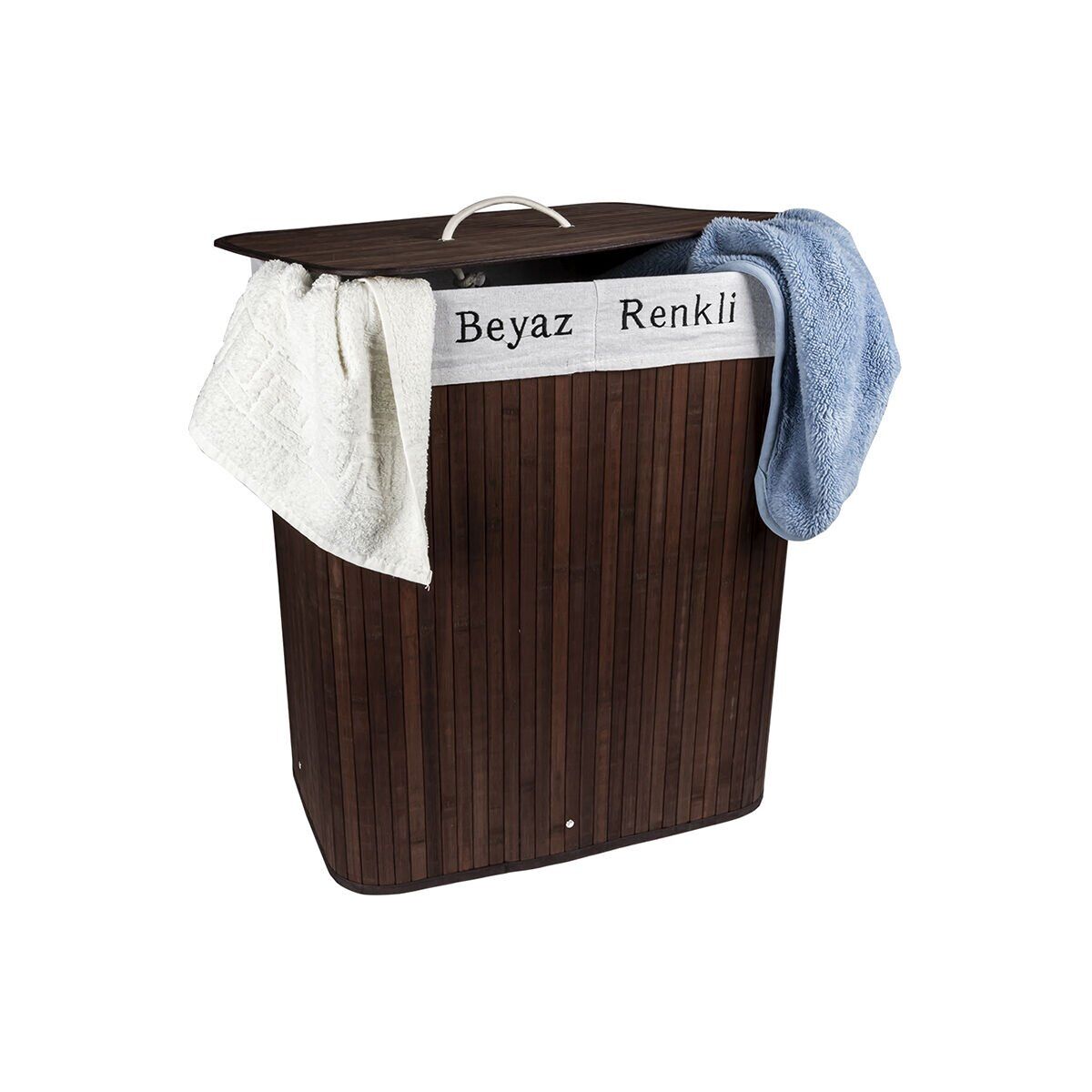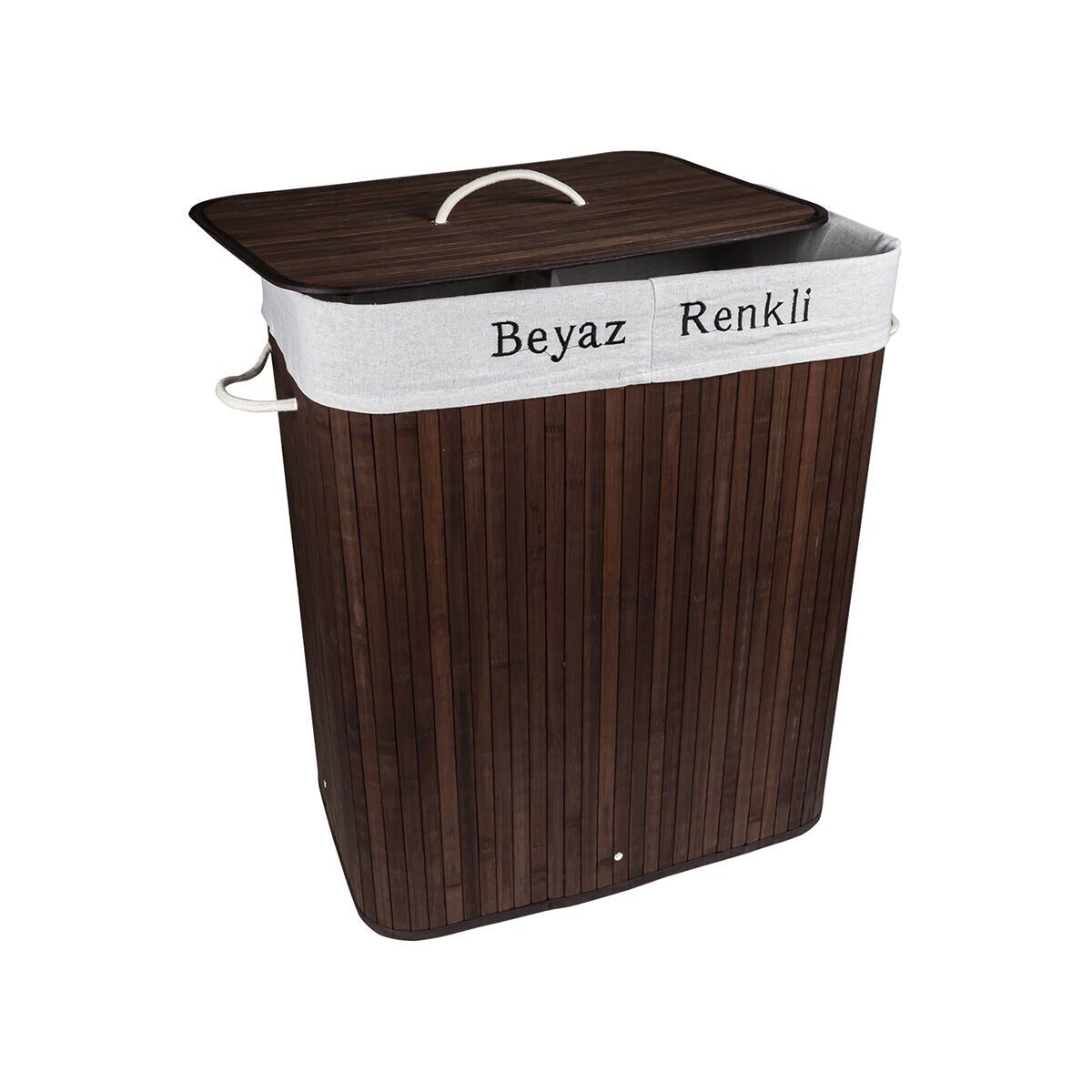 Çift Hazneli Bambu Çamaşır Sepeti - Ceviz ile Çamaşırlarınızı Düzenli ve Estetik Tutun!