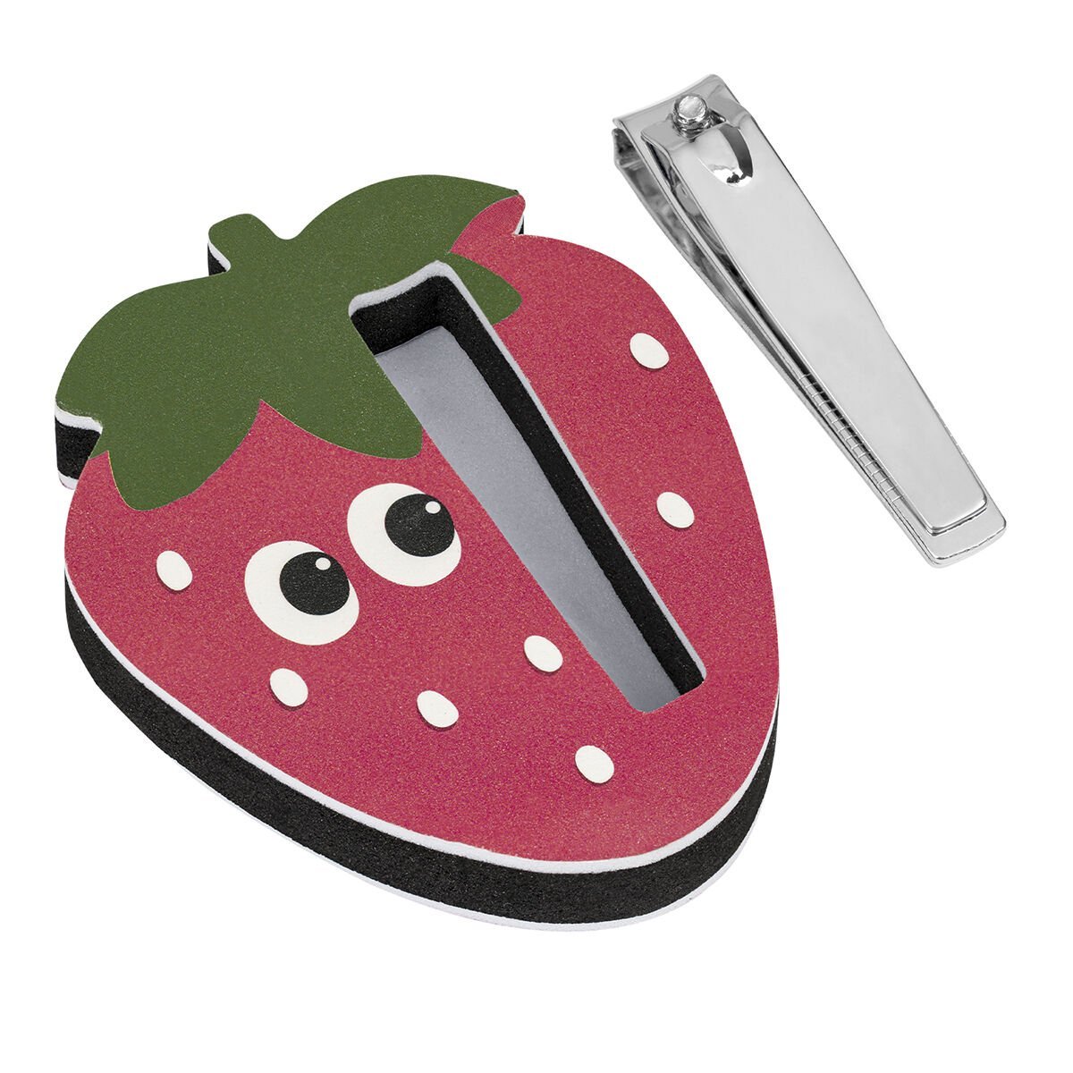 Çilek figürlü tırnak makas ve törpü seti, hem işlevsel hem de eğlenceli tasarımıyla dikkat çeker.