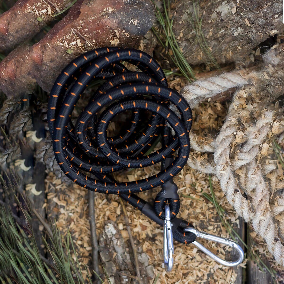 Gergi lastiğinin lastik uçlarında bulunan 2 adet karabina, ürünün çeşitli nesnelere kolayca bağlanmasını sağlar. Bu sayede, ürününüzü istediğiniz yere sabitleyebilirsiniz.