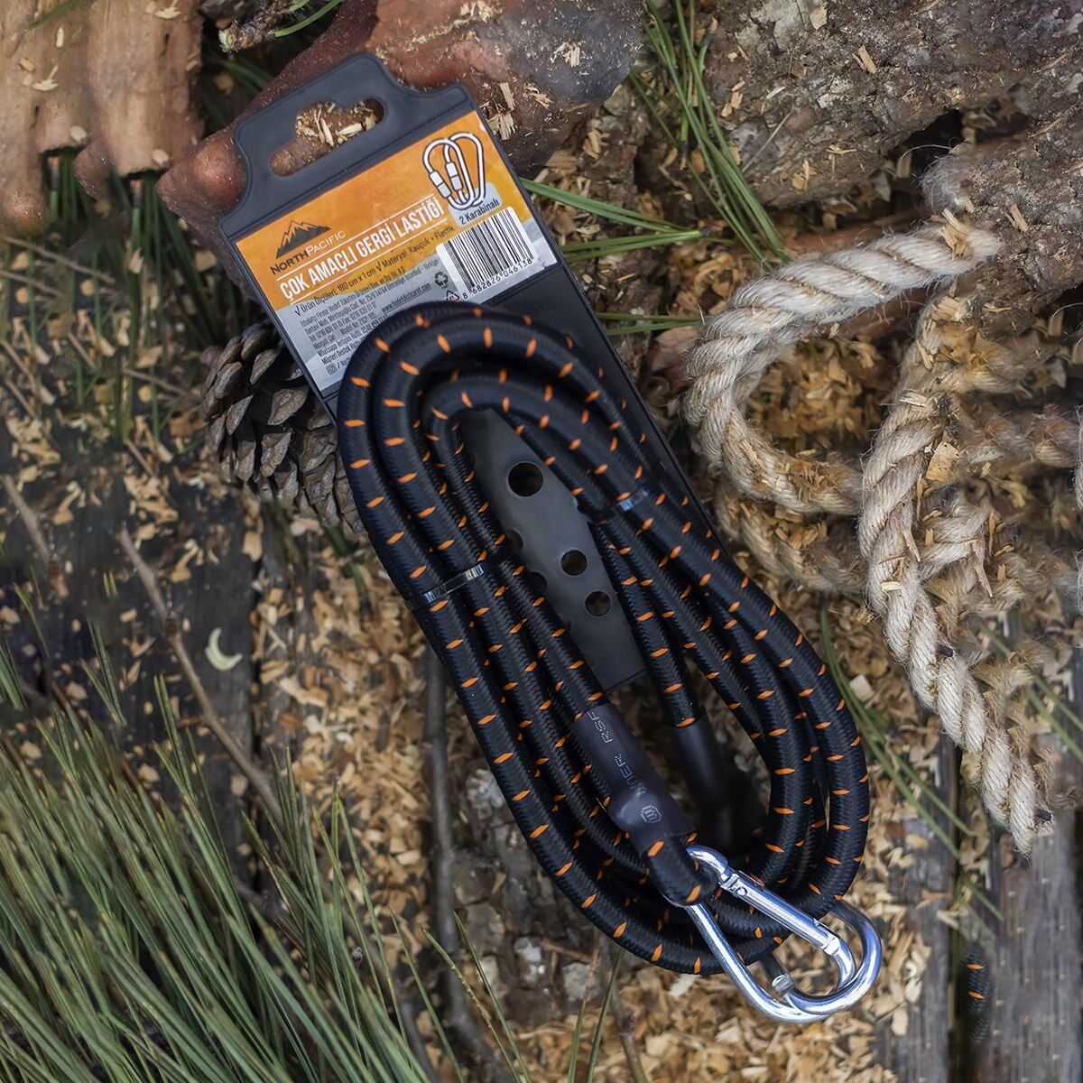 - Lastik uçlarında 2 adet karabina mevcuttur.