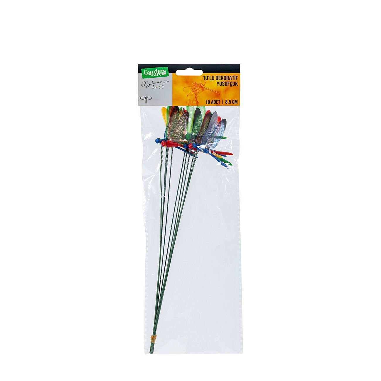 - Bahçenize, balkonunuza ve ev dekorasyonunuza zarif bir dokunuş katmak için tasarlanan Garden with Ware 10’lu Dekoratif Yusufçuk Seti, estetik görünümü ve dayanıklı yapısıyla hem iç hem dış mekân süslemelerinde harika bir tamamlayıcıdır.