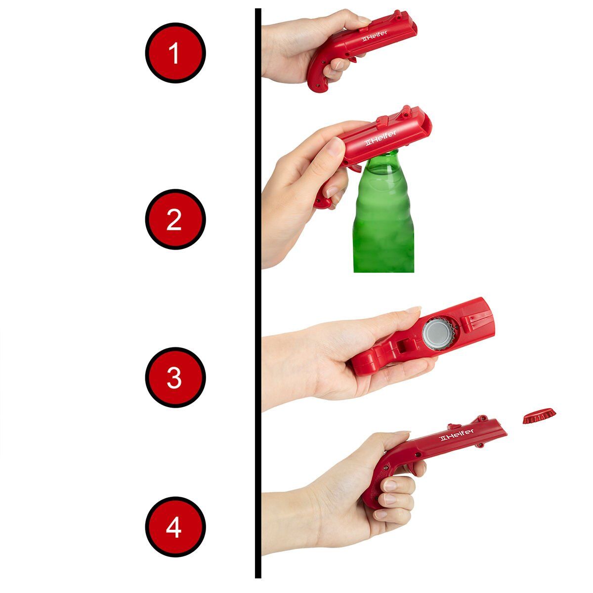 Bir oyuncak değildir ve doğrudan canlılara hedef alınmamalıdır. Ürün sadece şişe açmak için kullanılmalıdır.