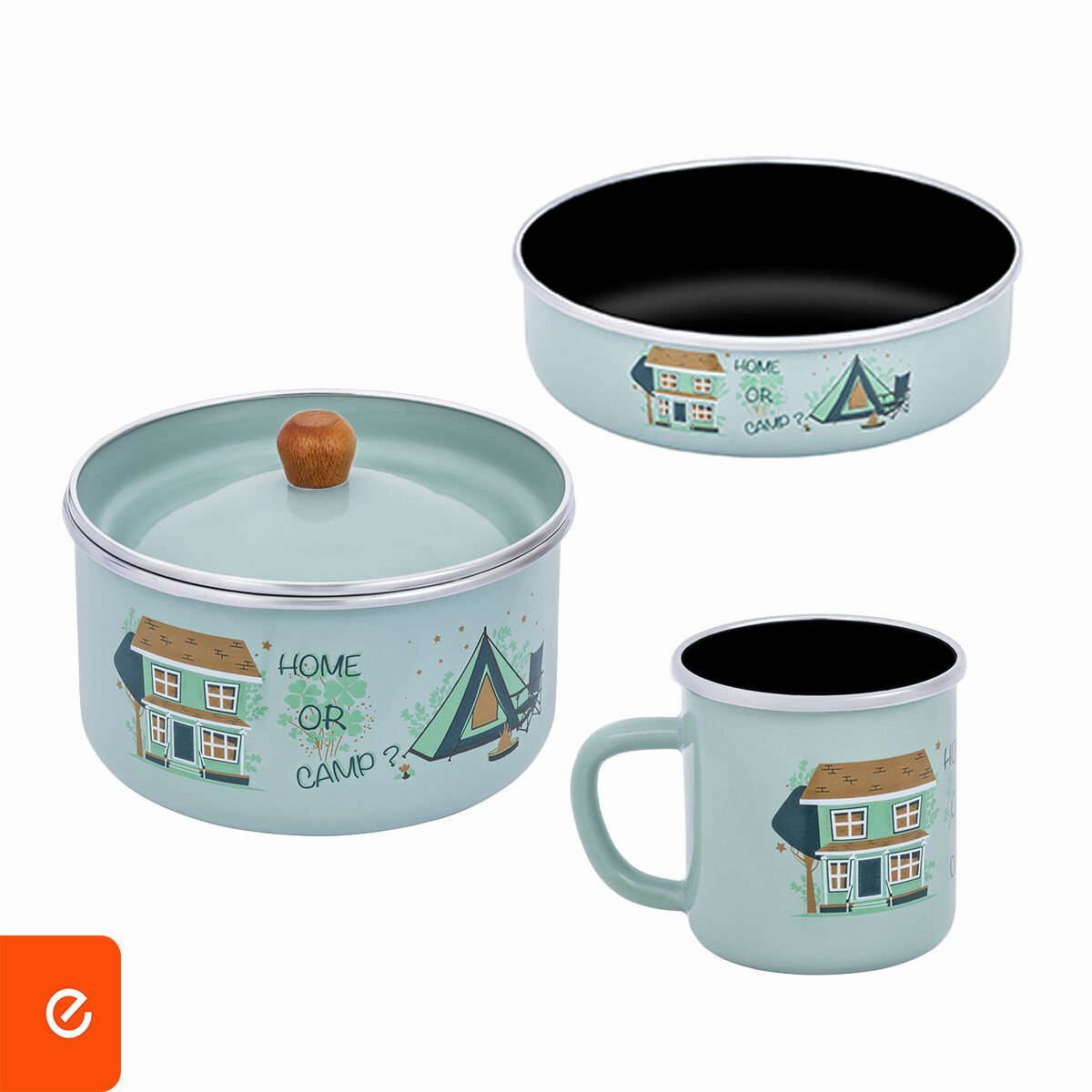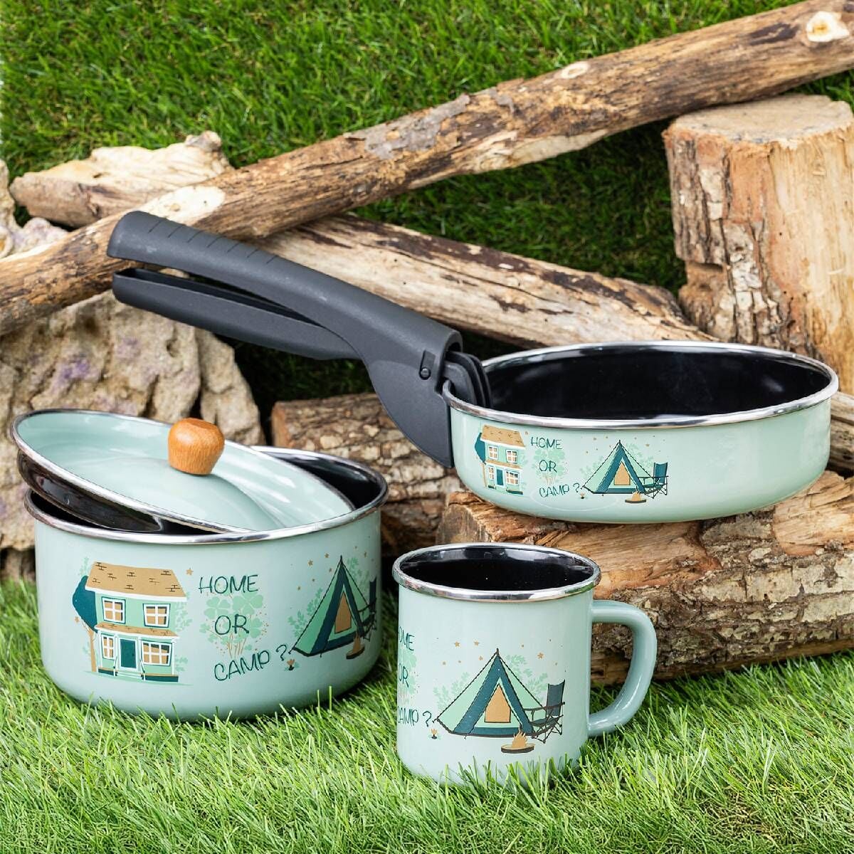 Dayanıklı emaye kaplama, kamp ateşi ve ocak gibi yüksek ısıya karşı dirençlidir. Tak-çıkar kulp sistemi, tüm parçaları tek sapla kullanmanıza olanak tanır, hem kullanım kolaylığı hem yer tasarrufu sağlar.