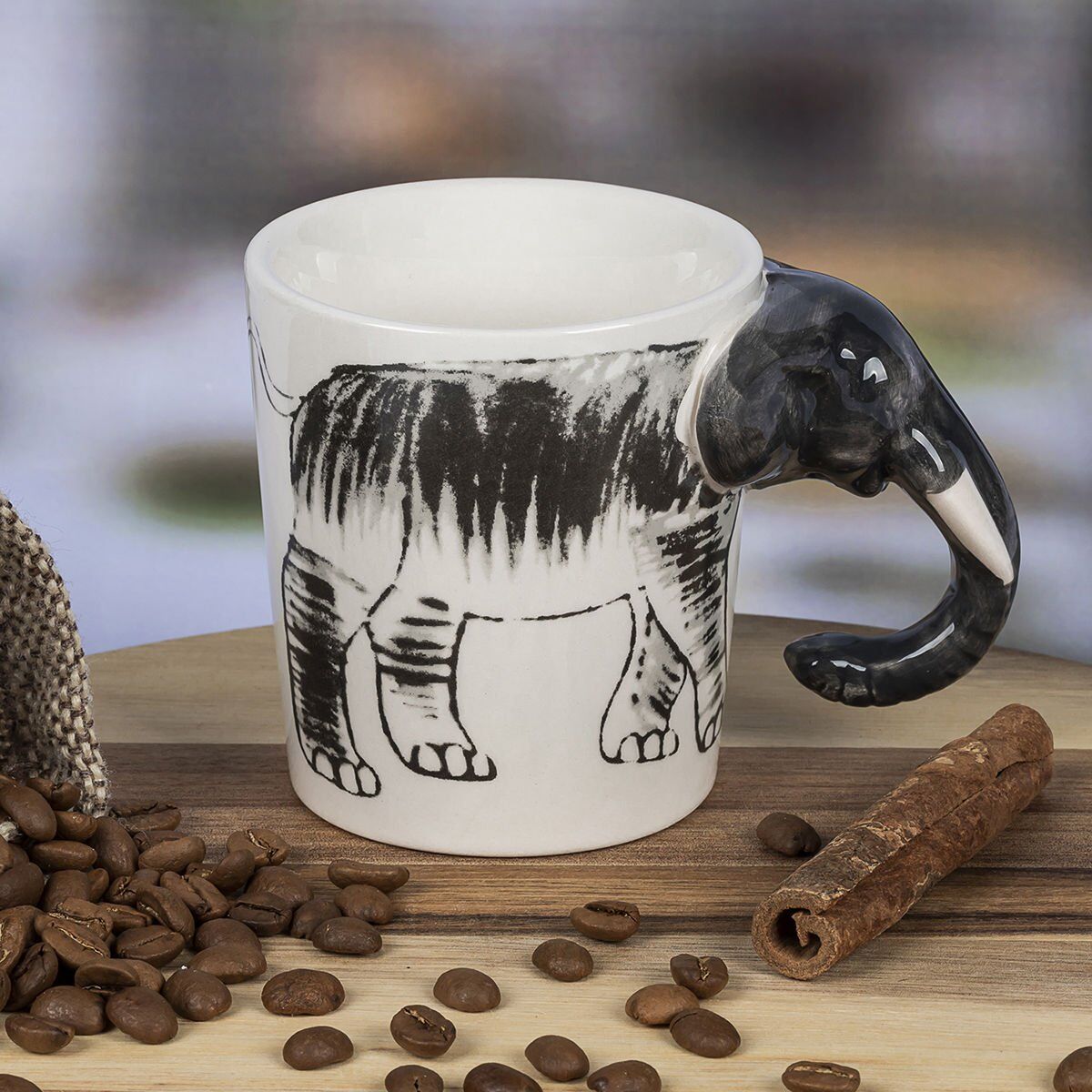 Fil Figürlü Kupa, seramik malzemeden üretilmiştir ve 250 ml hacme sahiptir. Bu sayede, hem sıcak, hem de soğuk içecekler için rahatlıkla kullanılabilir.
