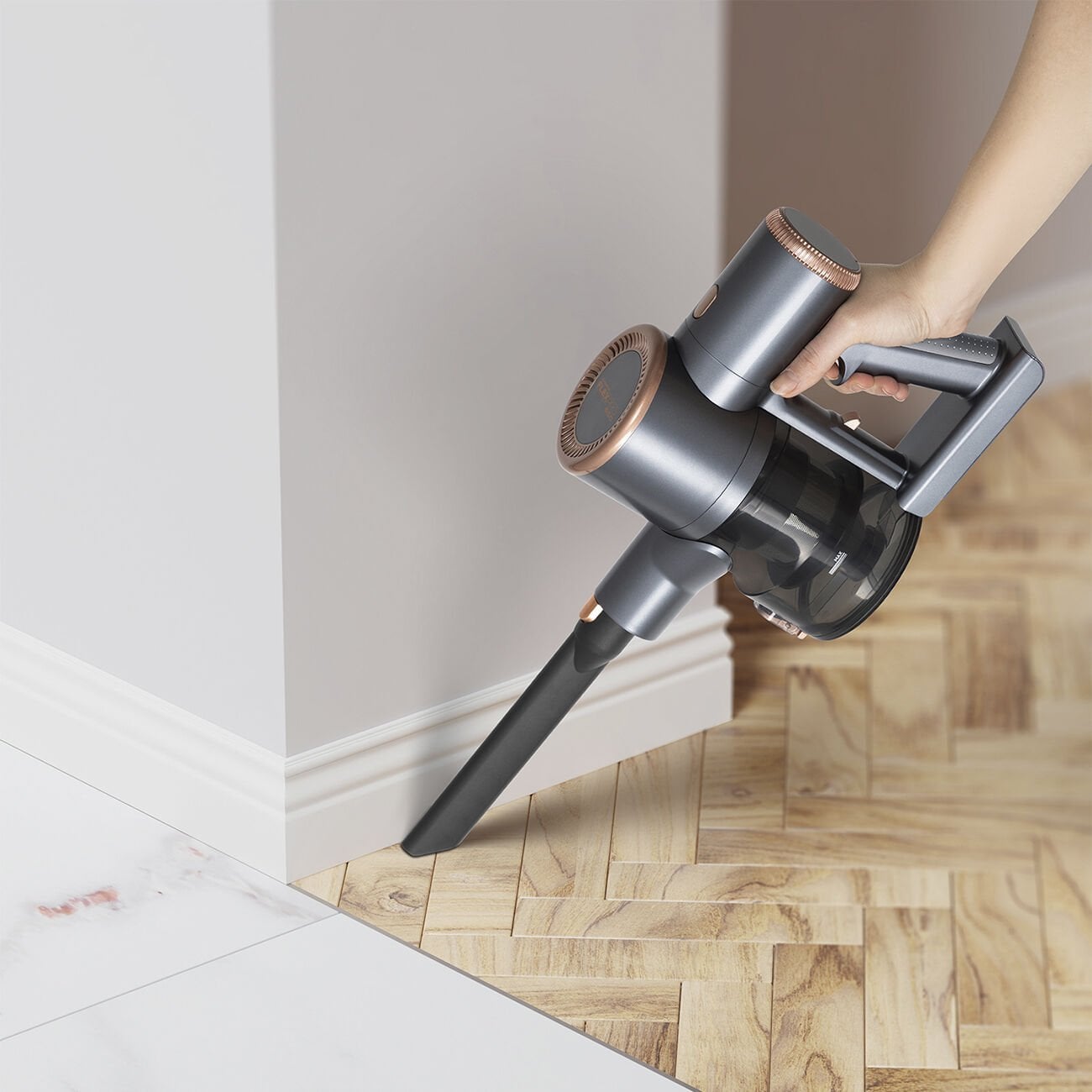 Soft Drive başlık, zemine uyum sağlayan yapısı sayesinde güçlü çekiş performansı sunarken yüzeyleri nazik şekilde temizler. LED aydınlatmalı başlık tasarımı ise karanlık köşelerde ve mobilya altlarında biriken tozların görünmesini sağlar.