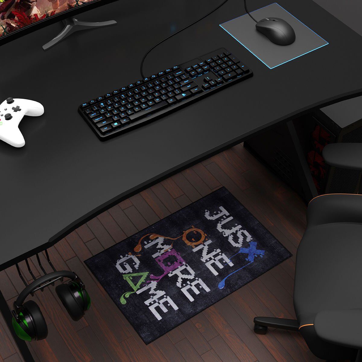 Bu gamer temalı paspas, renkleri ve deseni ile dikkat çekmektedir. 60 cm x 40 cm ölçülerindedir ve overlok kenarları sayesinde uzun ömürlüdür. Tüysüz yapısı sayesinde toz barındırmaz ve temizlenmesi kolaydır.