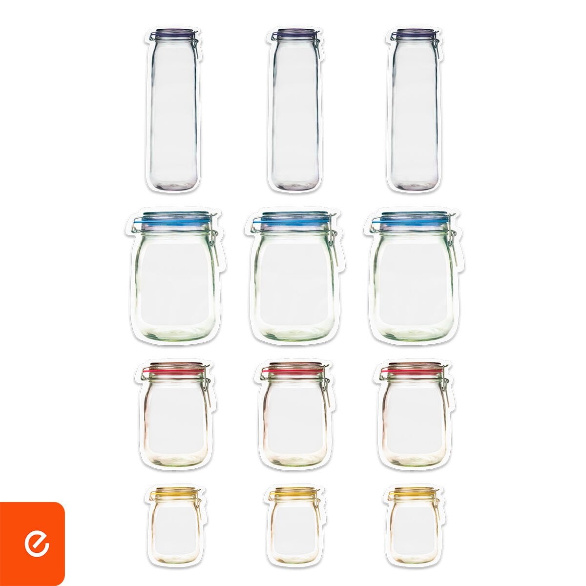 Gıda saklama poşetleri, yiyeceklerinizi taze ve kuru tutmak için ideal bir yoldur. Bu set, 100 ml, 250 ml, 350 ml ve 750 ml olmak üzere dört farklı boyutta poşet içerir. Bu sayede, farklı boyutlarda yiyecekleri saklayabilirsiniz.