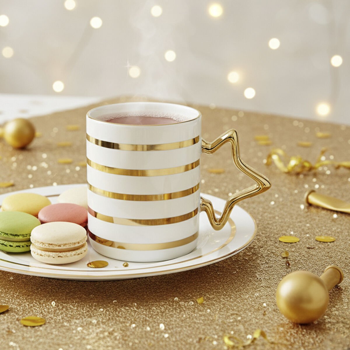 - Parlak seramik yüzeyi ve altın yıldız detaylarıyla hem günlük kullanım hem de özel anlar için estetik bir sunum sağlar.