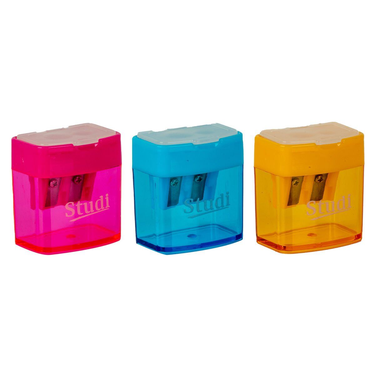 Çift girişli ve hazneli kalemtıraş, kalemlerinizi keskinleştirmek için idealdir.