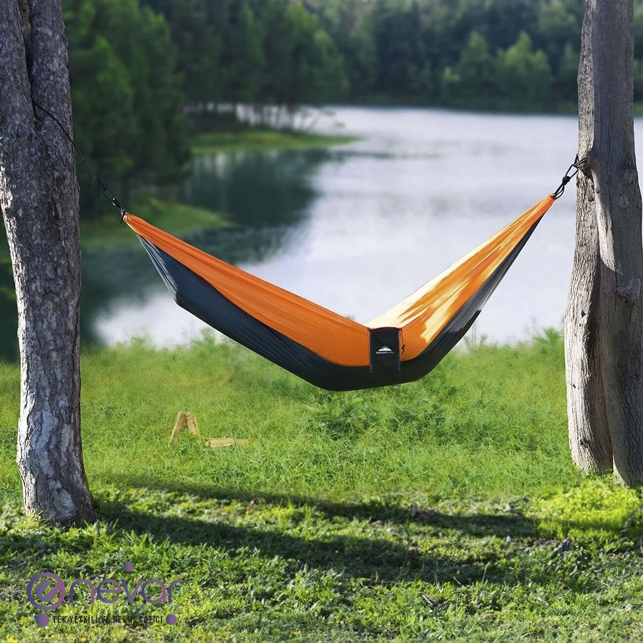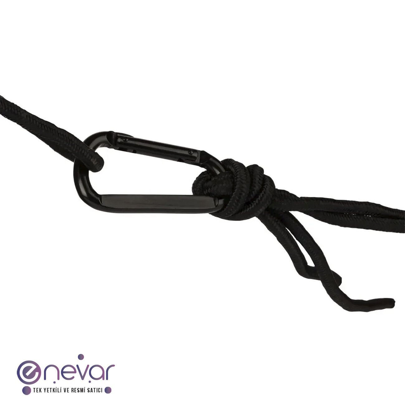 - Karabinalı Hamak, 210T naylon tafta su itici kumaş kullanılarak üretilmiştir.