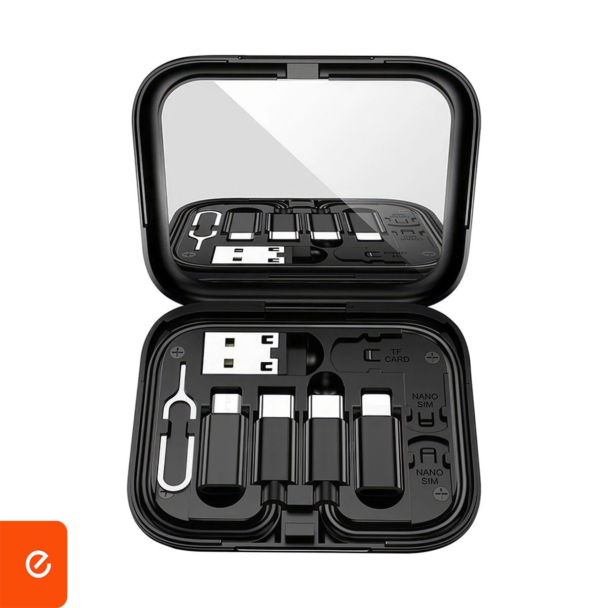 7,5 cm x 2 cm ölçülerindeki bu set, USB, Micro Type-C, USB-C Lightning gibi tüm temel girişleri desteklerken, TF kart yuvası ve Nano SIM kart bölmesi sayesinde yedek kartlarınızı güvenle taşımanızı sağlar. Dahili SIM ejektör pimiyle kart değişimi saniyeler içinde!