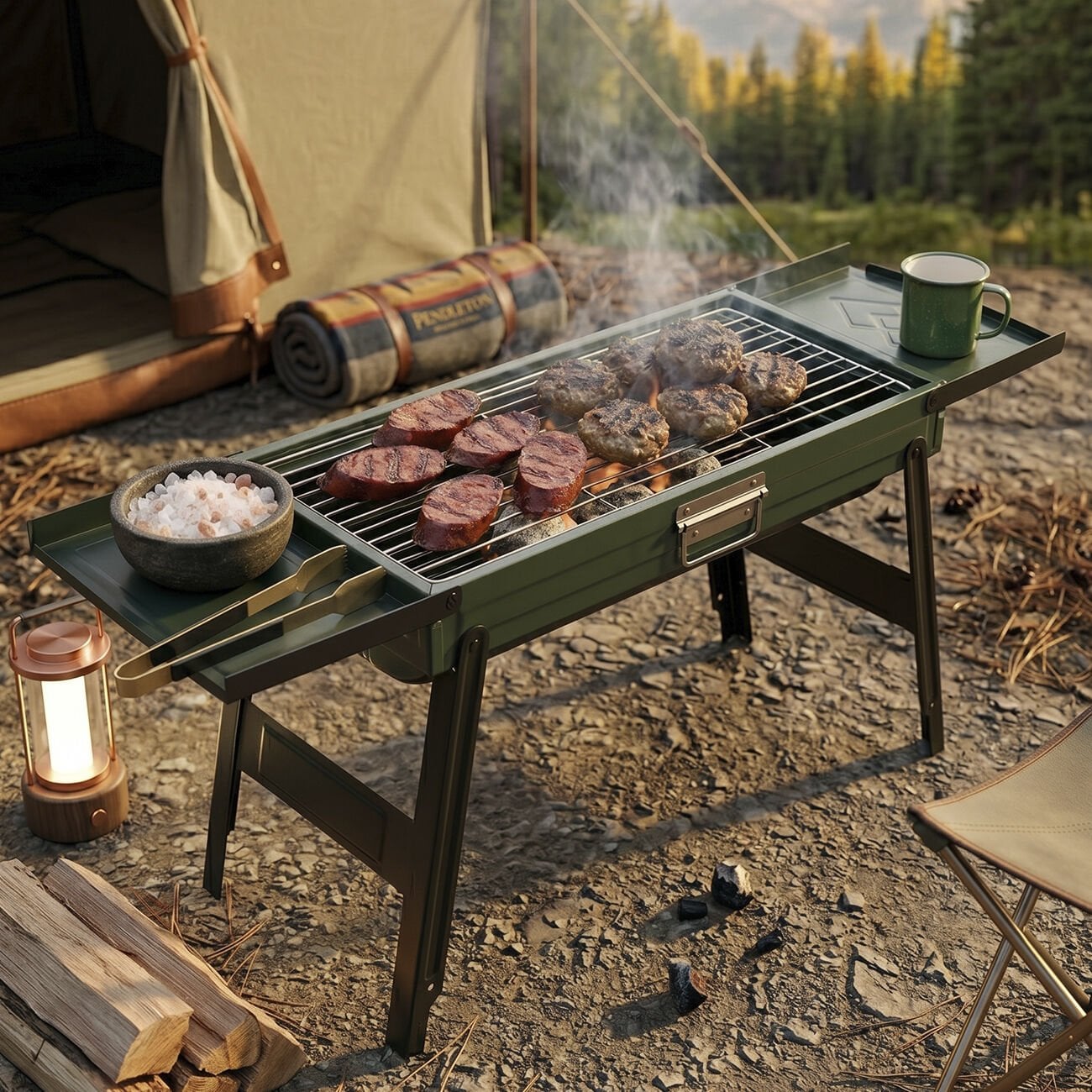 - Proware Katlanabilir Mangal, hafifliği ve fonksiyonel tasarımıyla outdoor aktivitelerde pratik bir pişirme deneyimi sunar. Taşınabilir yapısı sayesinde dilediğiniz her yerde kolayca kullanılabilir.