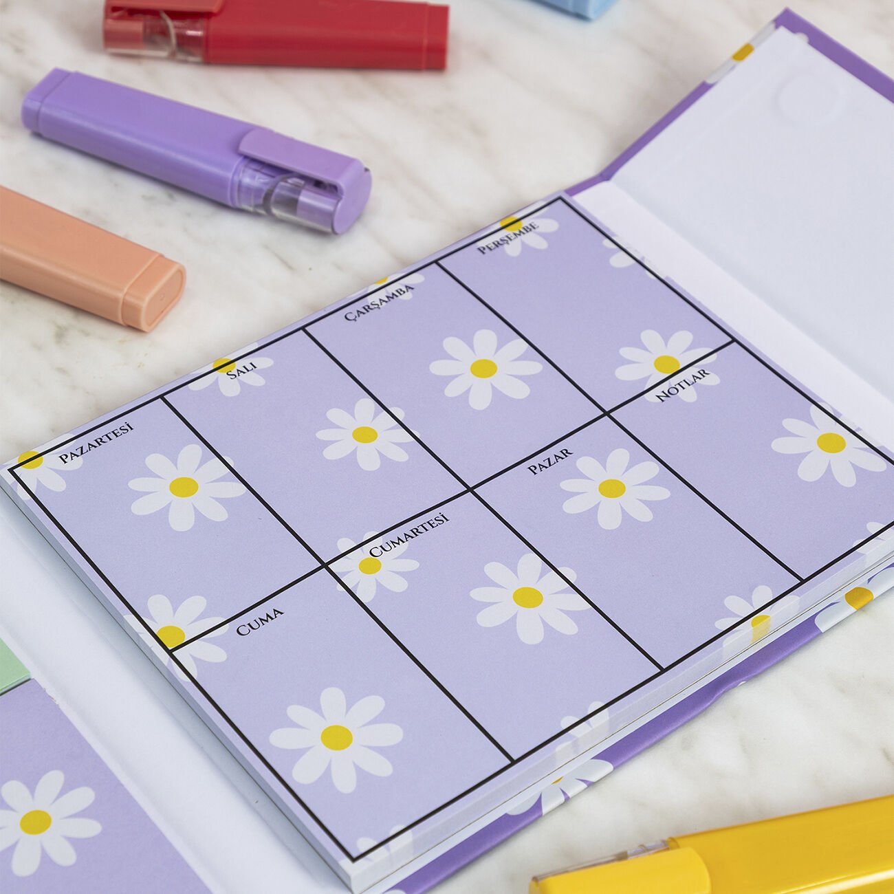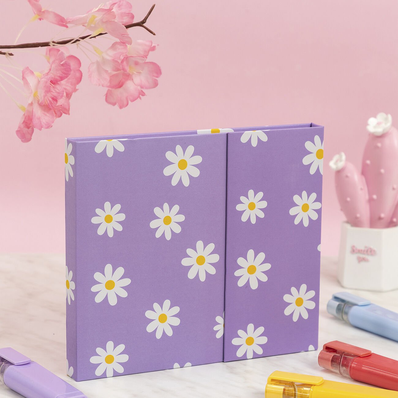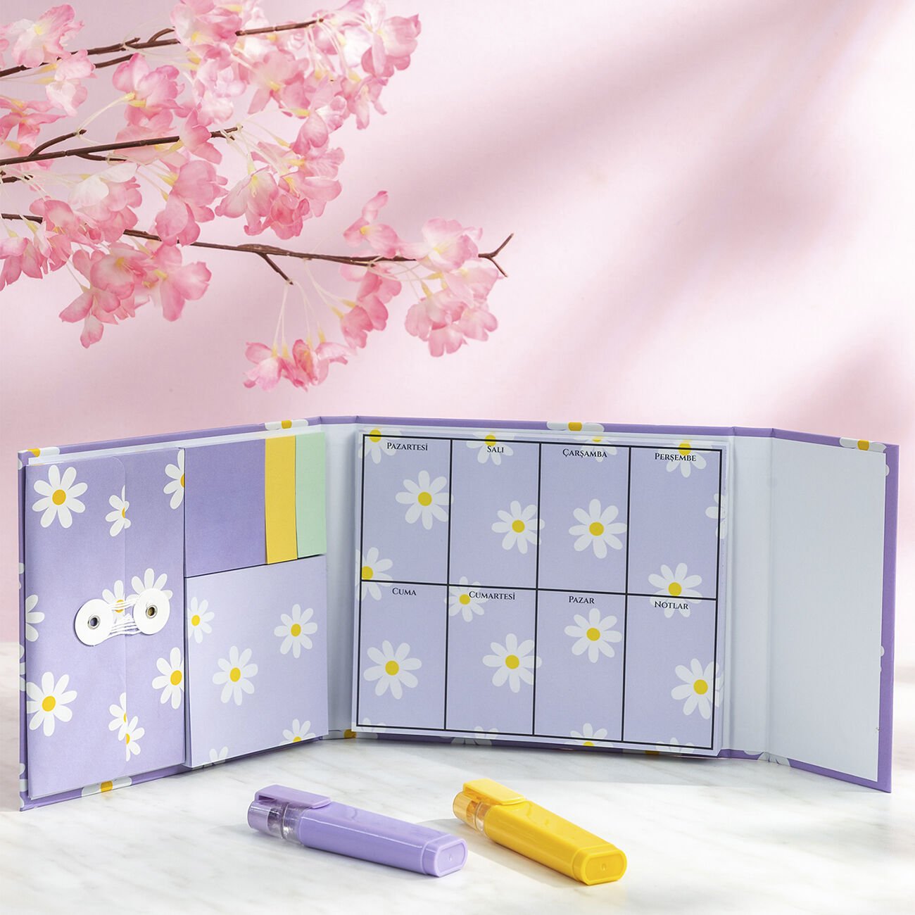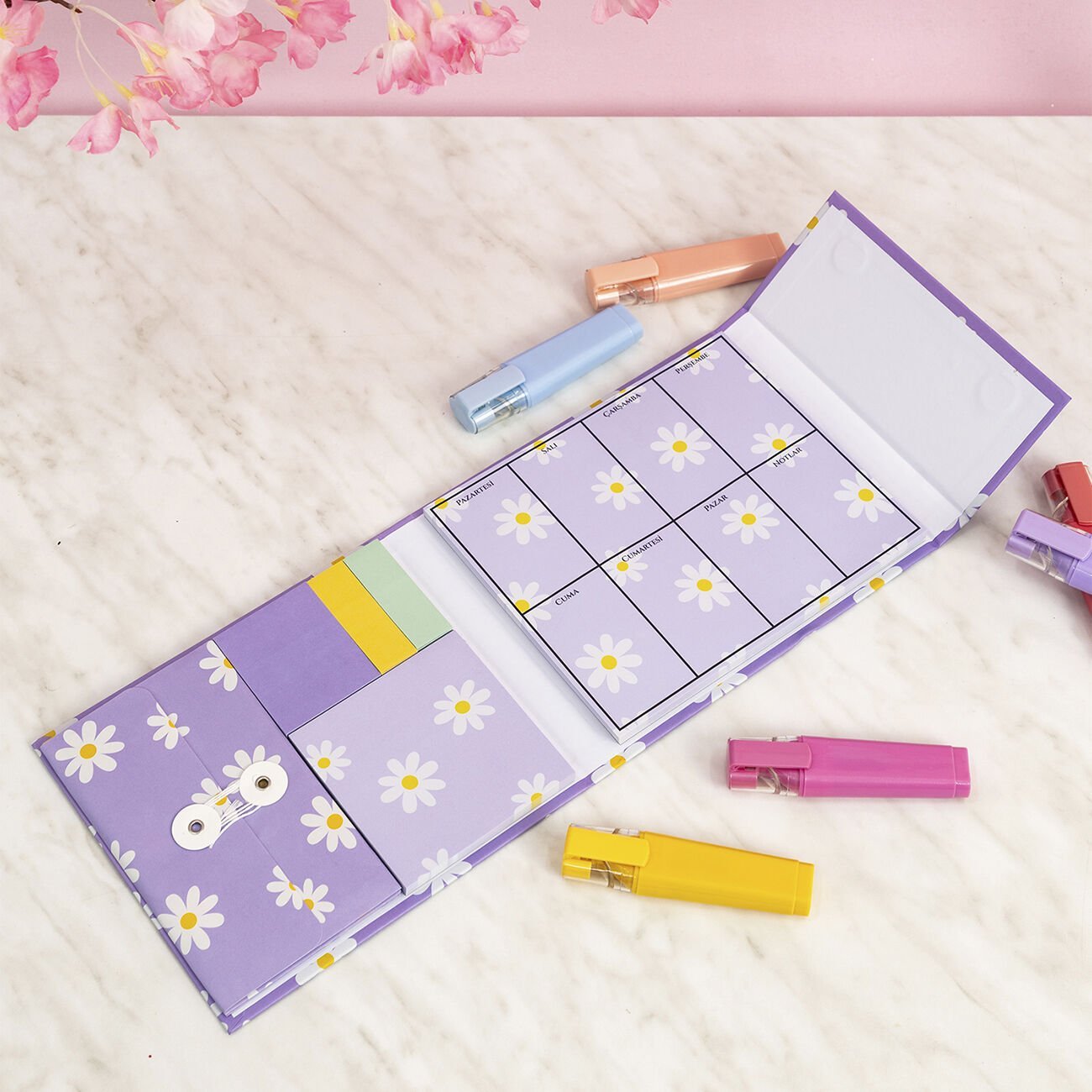 Sıradan notluk setlerinden farklı olarakçarpıcı çiçek desenleri ve manyetik kapak tasarımıile hem işlevsel hem de estetik bir deneyim sunar. Masanızı düzenlerken görsel olarak da zenginlik katar ve günlük kullanımda motivasyonu artırır.