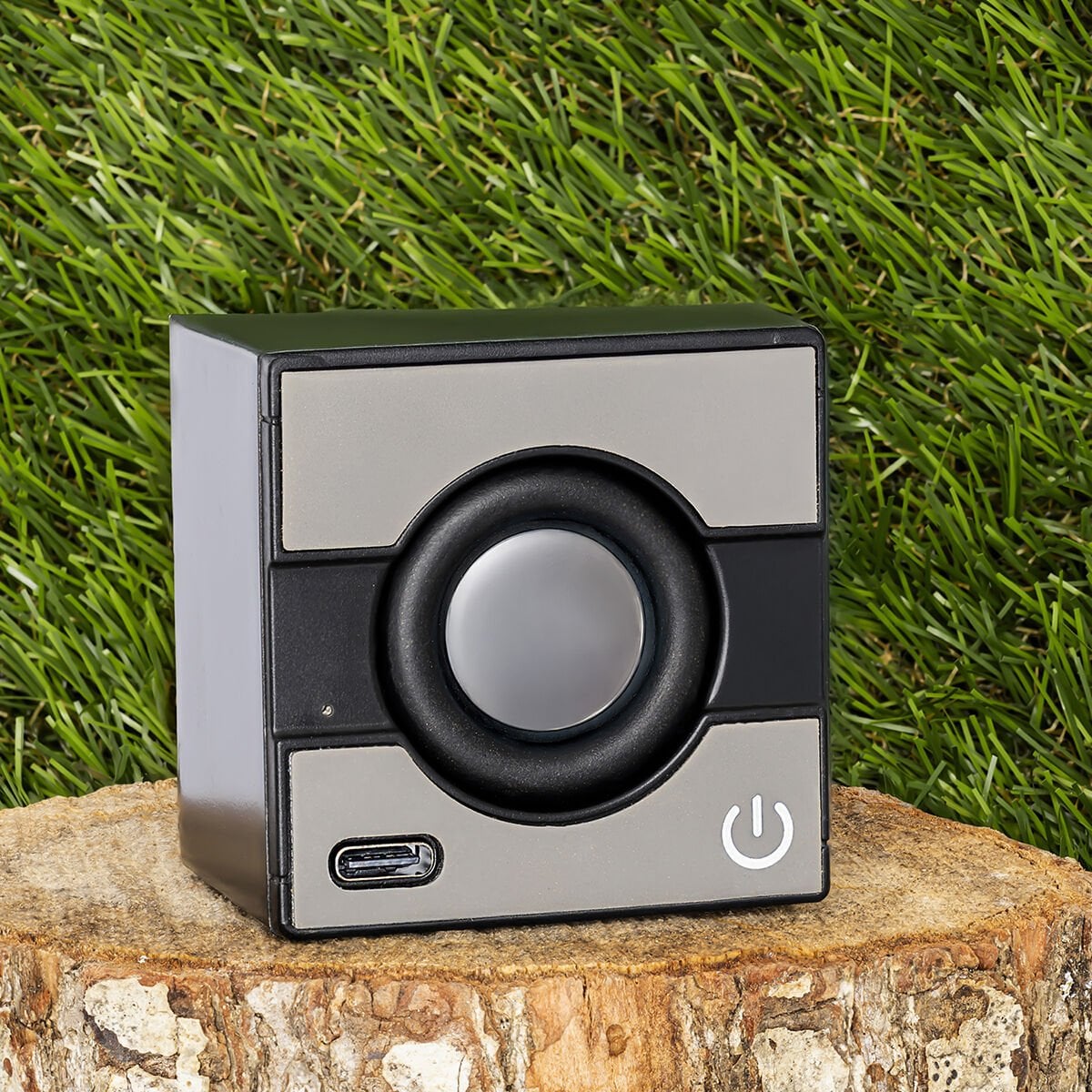 Sadece 5 × 5 × 3,6 cm ölçülerindeki Mini Bluetooth Hoparlör, küçük boyuna rağmen net ve dengeli bir ses sunar.