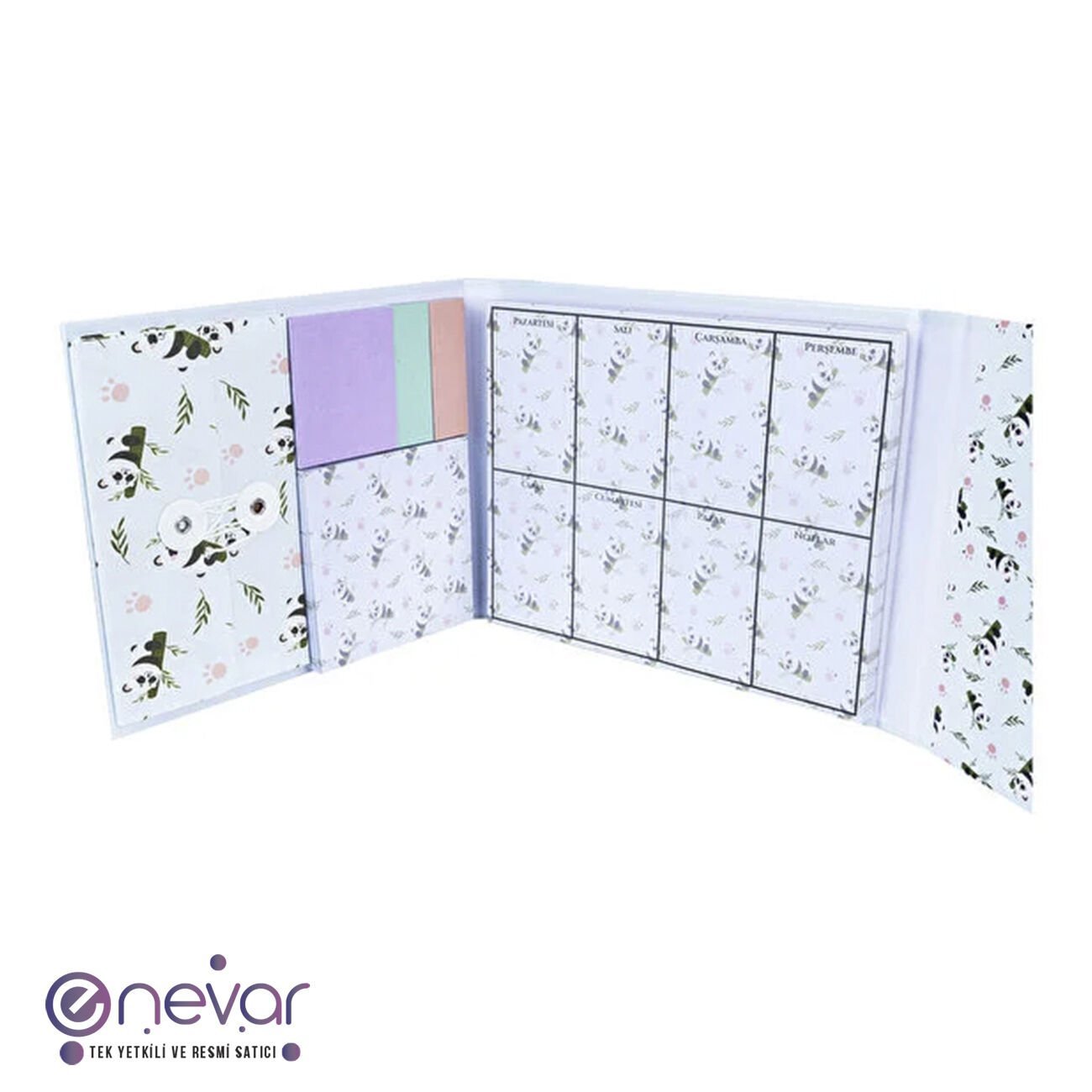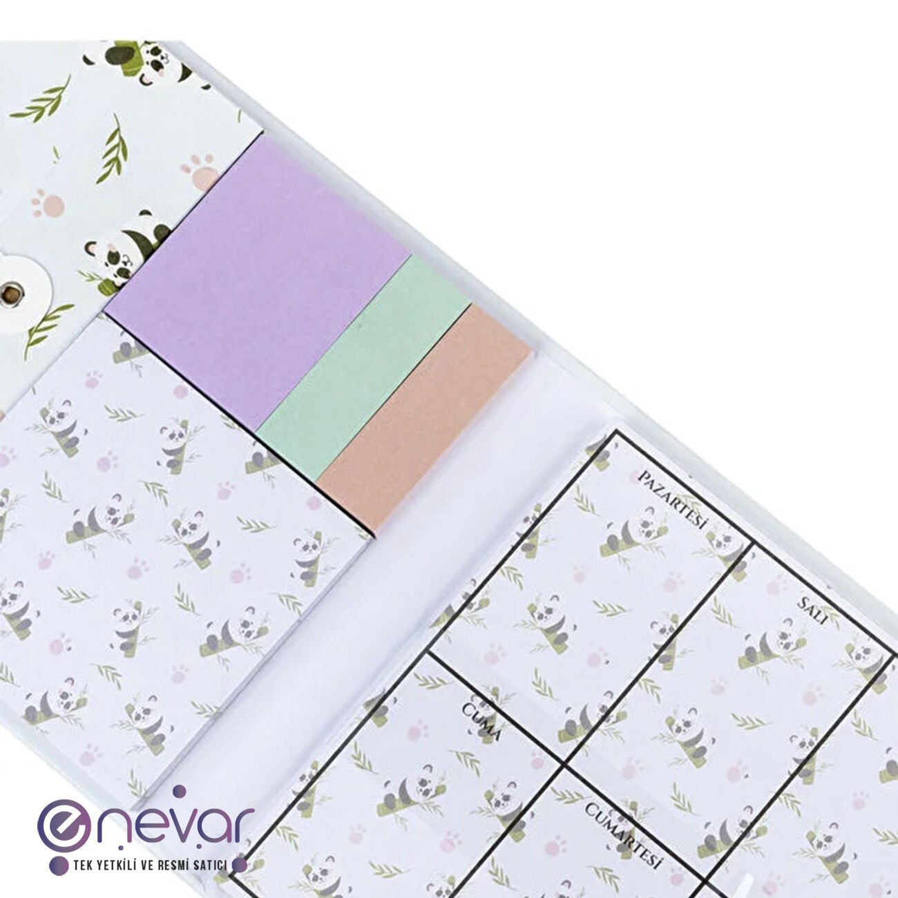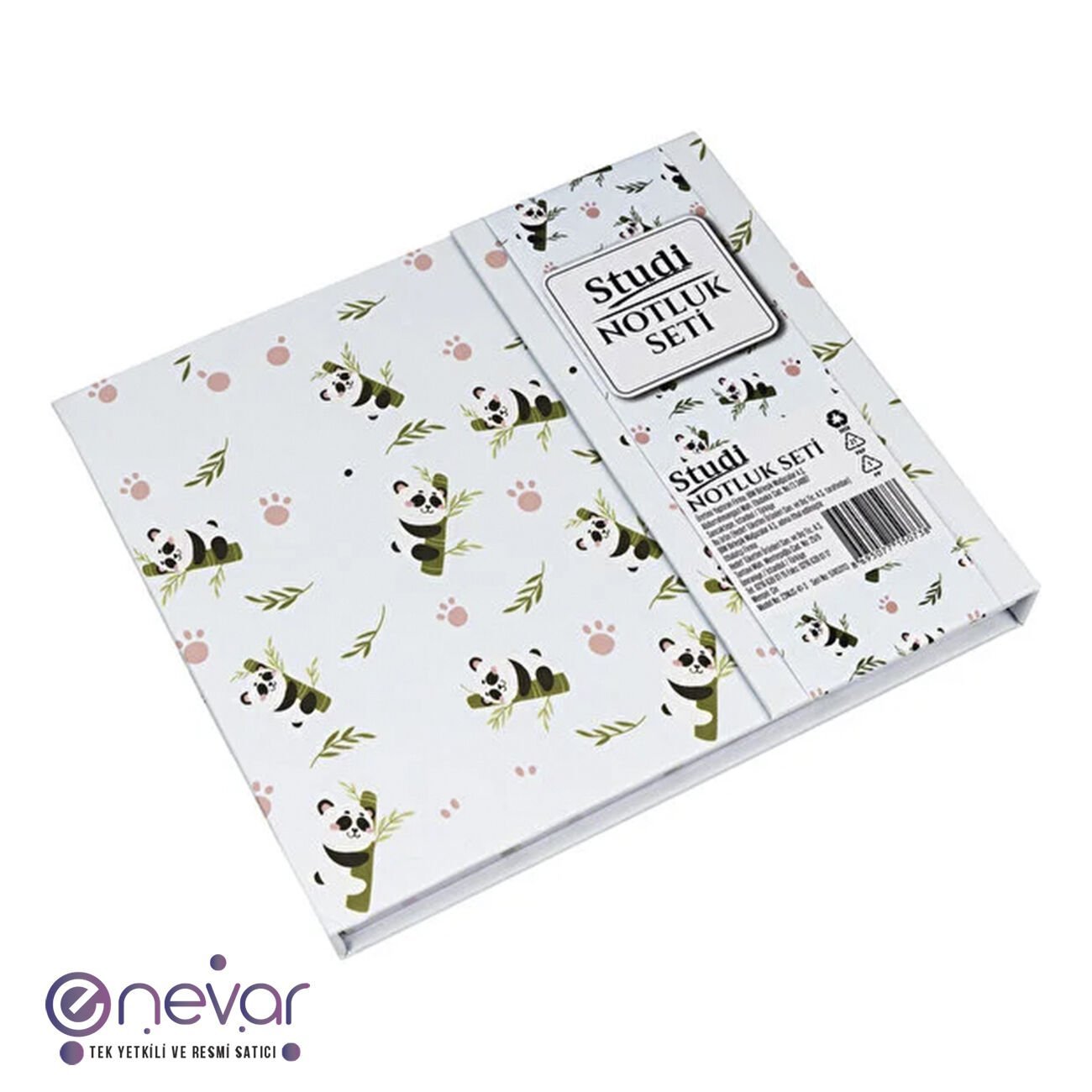 Panda desenli bu notluk seti, masanızda sevimli bir detay olarak yer alırken, not tutmayı da eğlenceli hale getirir. Hayvan severler ve estetiğe önem verenler için mükemmel bir seçim olan bu set, gününüzü daha keyifli hale getirir.