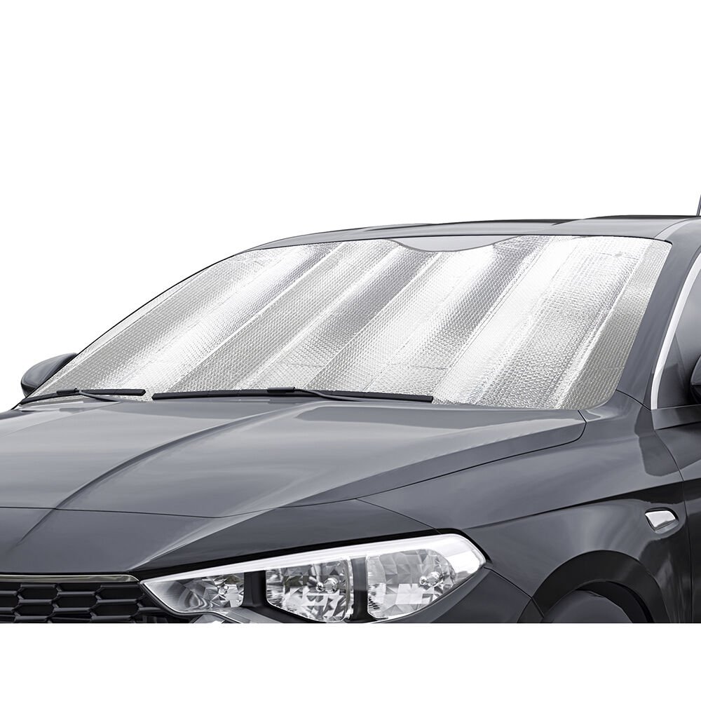 Yaz aylarında otomobilinizin içini korumanın en pratik yollarından biri olan ön cam güneşliği, 130 cm x 160 cm ölçüleriyle yerli ve yabancı tüm binek araçlarda rahatlıkla kullanılabilir.
