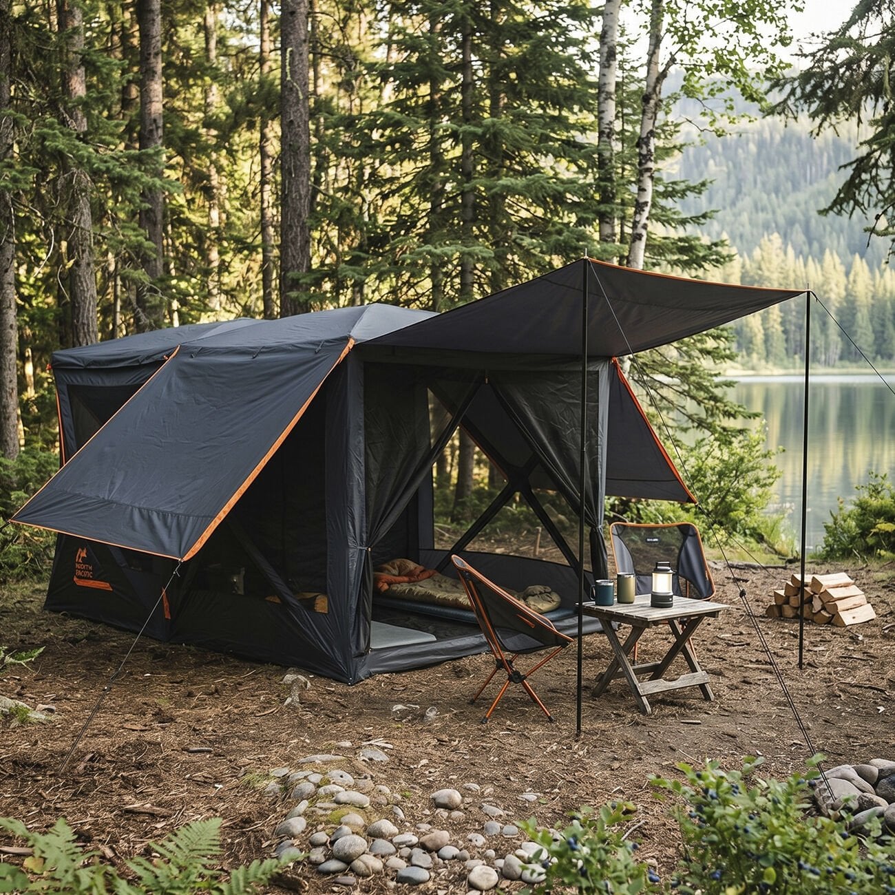 - Kalabalık aileler ve grup kampları için tasarlanan 8 kişilik kamp çadırı, geniş iç hacmi, sağlam direk yapısı ve yüksek su geçirmezlik özelliği ile konforlu bir kamp deneyimi sunar.