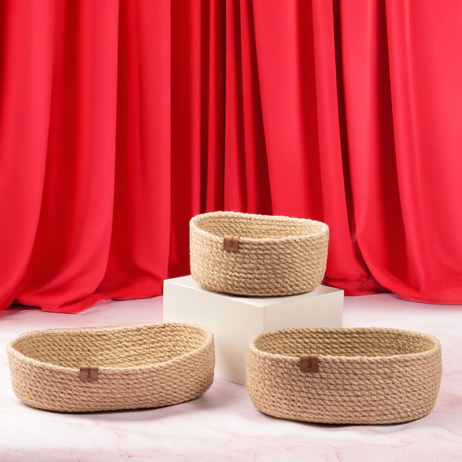 Jüt, doğal bir malzemedir ve evinizde hem depolama amaçlı hem de dekoratif sepet olarak kullanılabilir. Jüt sepet, evinize doğal bir dokunuş katar ve sıcak bir hava yaratır.