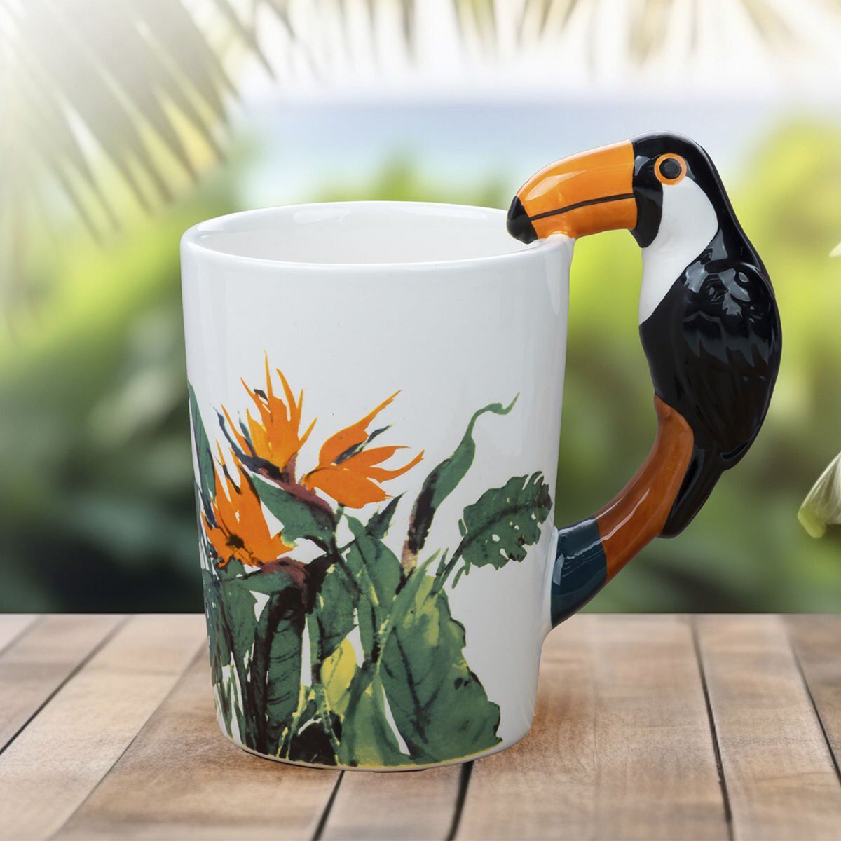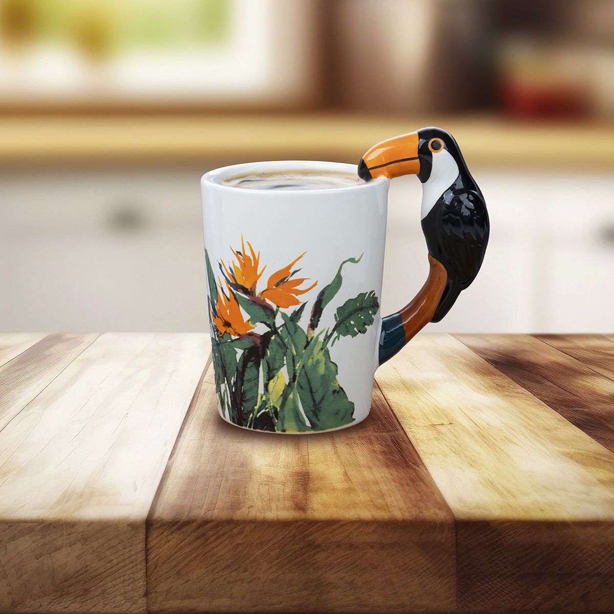 Seramik malzemesi ve şık tasarımıyla her bir içimi özel kılacak olan bu kupa, papağan figürü ile de keyifli bir atmosfer sunar.