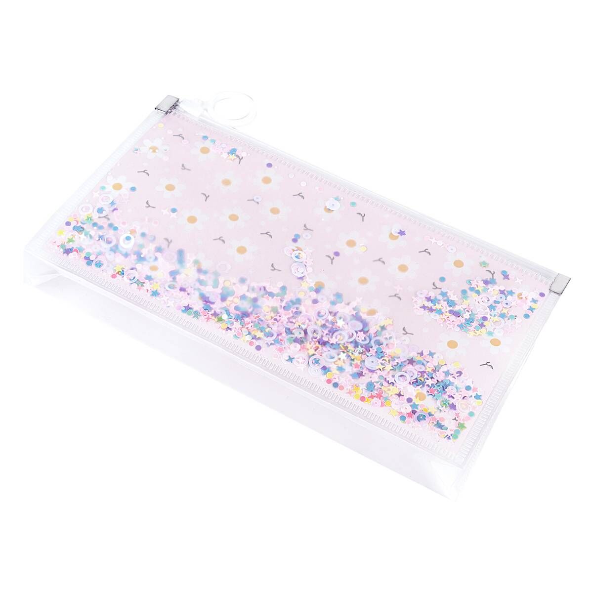 Papatya Desenli Simli Şeffaf Kalem Çantası