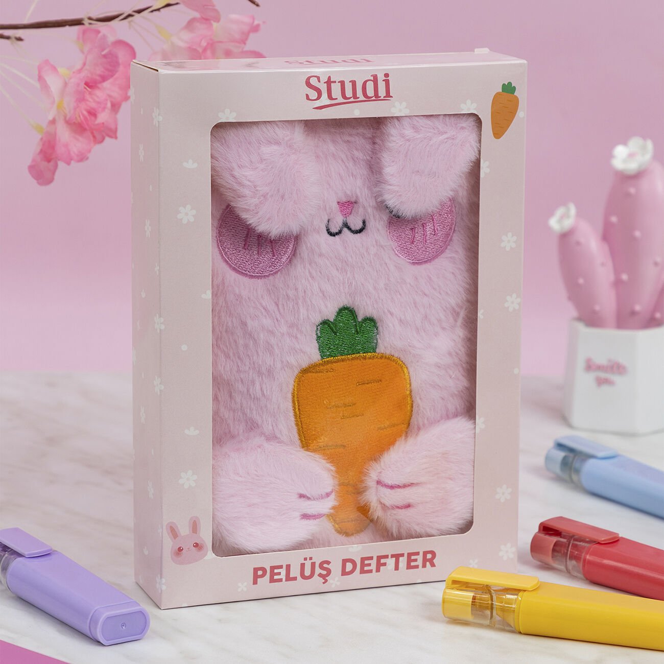 Pelüş ve Eğlenceli Defter - Tavşan FigürlüStudi Pelüş ve Eğlenceli Defter - Tavşan Figürlü ile yazmak artık daha keyifli! Yumuşacık kapak ve sevimli tavşan tasarımıyla okulda, ofiste veya evde kullanabileceğiniz A5 boyutunda dekoratif ve pratik defter.11.005847.02