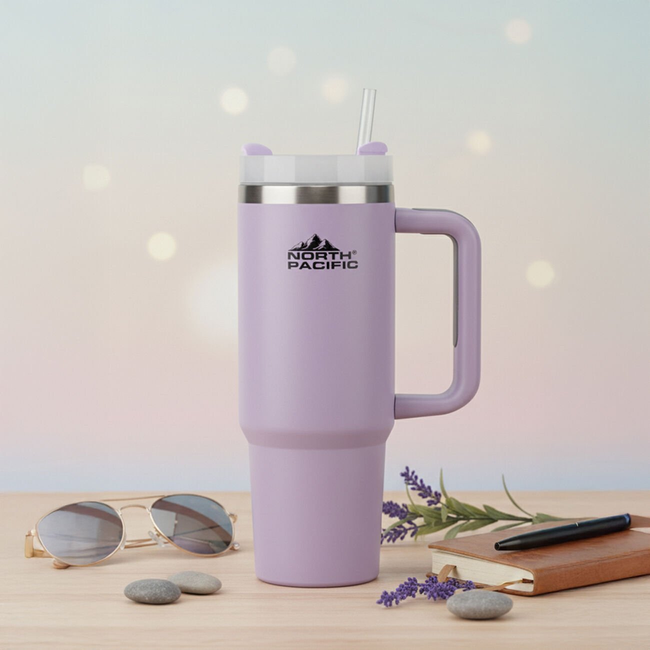 North Pacific Pipetli Termos 900 ML – Paslanmaz Çelik Lila